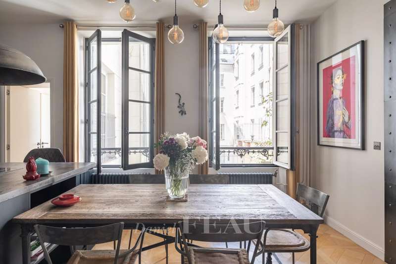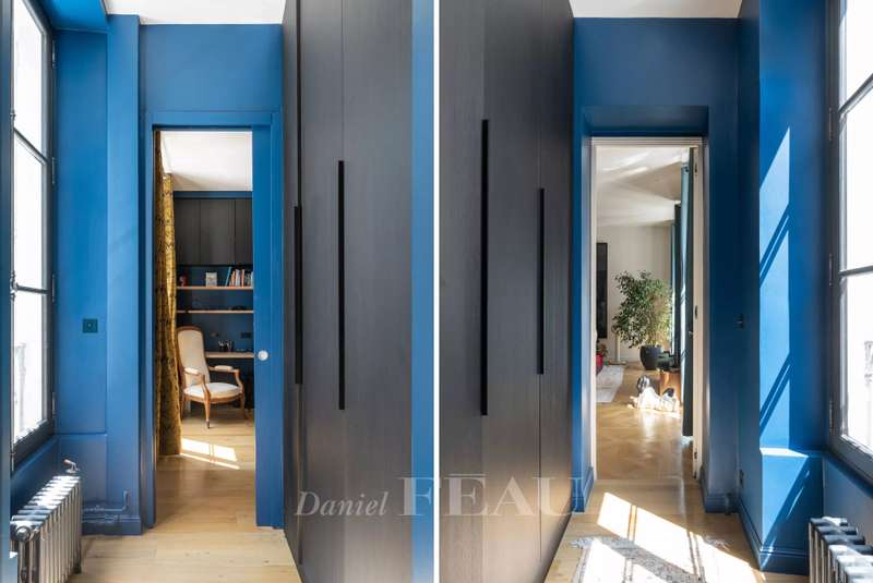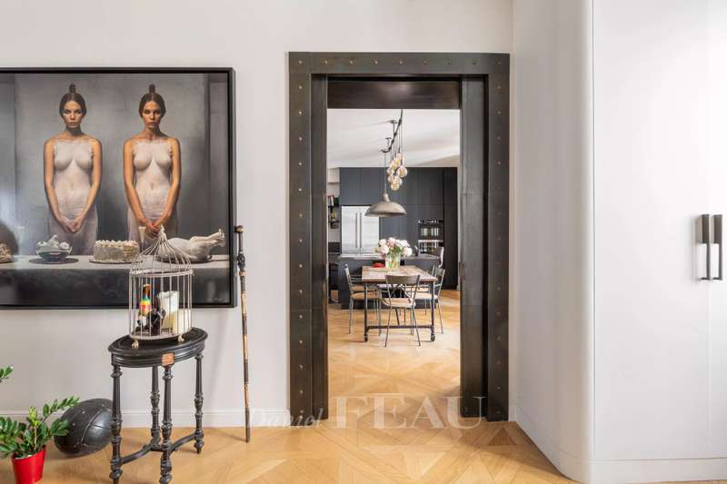 Rue de Condé. This bright and peaceful 170 sqm apartment featuring 3.10 metre high ceilings is on the first floor of a perfectly maintained late 19th century building. Benefiting from a refined contemporary decoration, it includes a dual-aspect living/reception room enjoying open views of the street and a courtyard, a spacious fully equipped kitchen with dining facilities, a TV lounge, four bedrooms each with a bath or shower room, and a utility room. With a 5 sqm maid’s bedroom with mains plumbing on the 5th floor (lift access), and a large cellar.