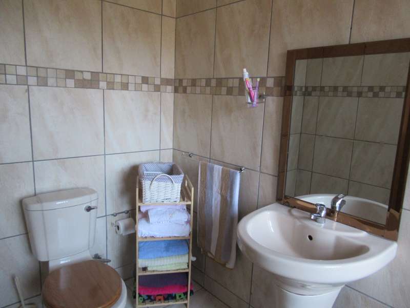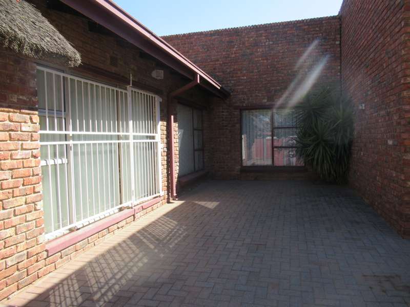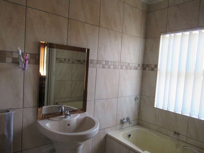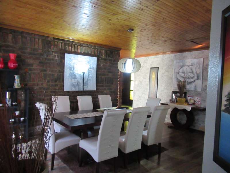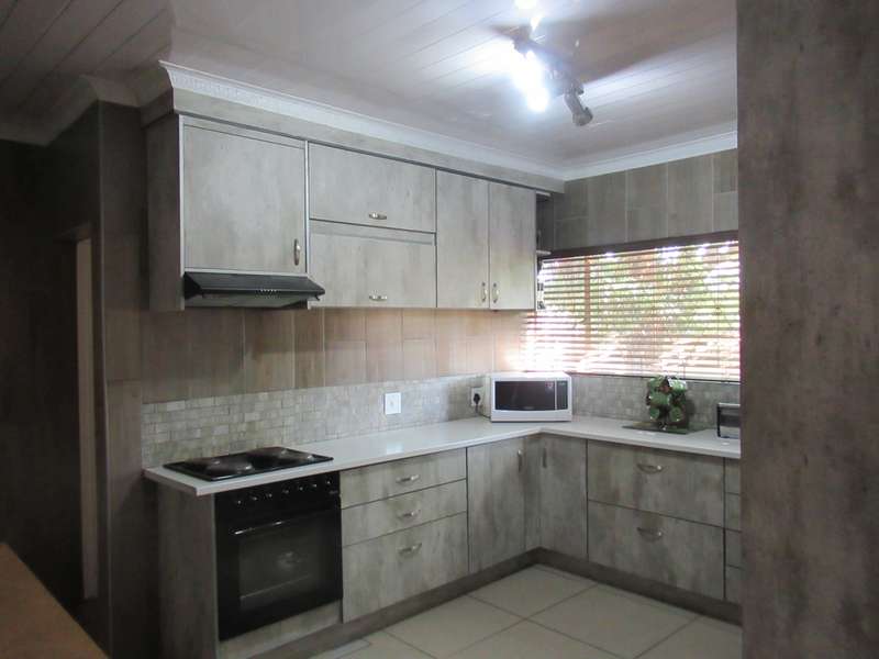 This low maintenance property offers 4 bedrooms, main with ensuite. Spacious 3 toilet, basin and bath. 3 living areas, bar, entertainment area. Kitchen open plan with wooden built-in cupboards and a scullery. Spacious entrance hall leading to the entertainment and braai area inside. Lapa, pool but not in good condition, however it can be repaired. it has a beautiful garden, 2 garages, safety doors and alarm system around the house. One outside toilet. Safety gate and paving around the yard. It is situated next to the shopping complex, police station , filling station and school. Disclosure: The under-roof property size is an estimate, and the agent won't be held liable if it is over or underestimated.