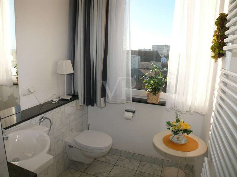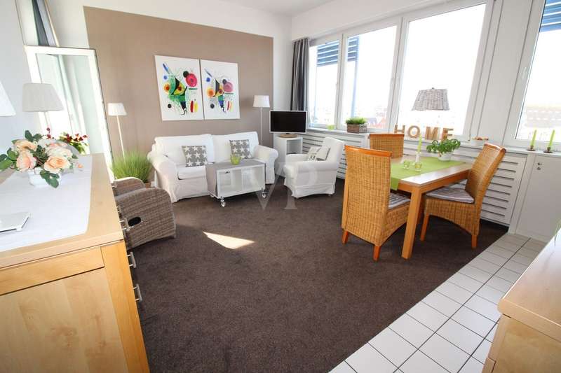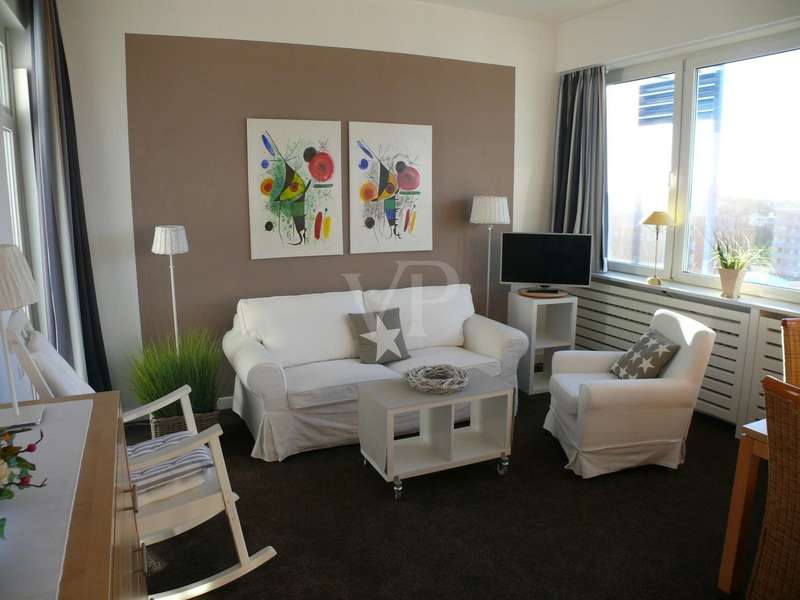 Fantastic 2-room apartment with sea view - your new hideaway above the rooftops of the city In an attractive location, this approx. 52 sqm apartment is the perfect retreat for anyone who values brightness, views and sophisticated comfort. The open-plan living area impresses with a large window that not only lets in plenty of natural light, but also offers a fascinating view as far as the coast. The pleasantly high ceilings emphasize the generous sense of space and create an airy, relaxed atmosphere. The sunny, south-facing balcony invites you to linger - with sunshine well into the evening hours. The modern kitchenette is harmoniously integrated into the living area and offers ideal conditions for cooking and enjoying meals together. A quiet retreat with generous storage space awaits you in the bedroom - perfect for a tidy living experience. The bright shower room not only boasts contemporary fittings, but also a little highlight: a sea view while showering. The apartment has its own parking space in the garage right next to the building - convenient and secure. There is also a spacious cellar room - ideal for storing e-bikes, sports equipment or seasonal items. A home that impresses with its light, location and quality of life. Arrange your viewing appointment now!