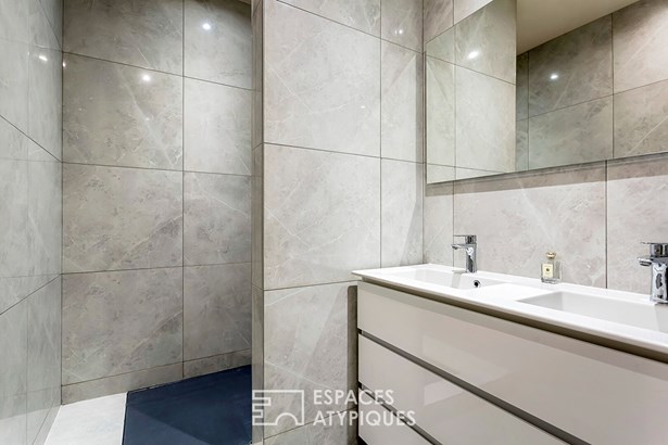 The contemporary, high-end kitchen, open to the living room, blends seamlessly into this space, offering both conviviality and elegance. The apartment comprises two spacious bedrooms, one with a custom-made dressing room, as well as a designer shower room and a separate WC, in a layout designed to optimize comfort and refinement. An attic is also included.