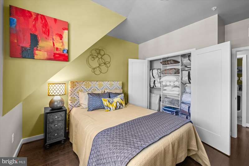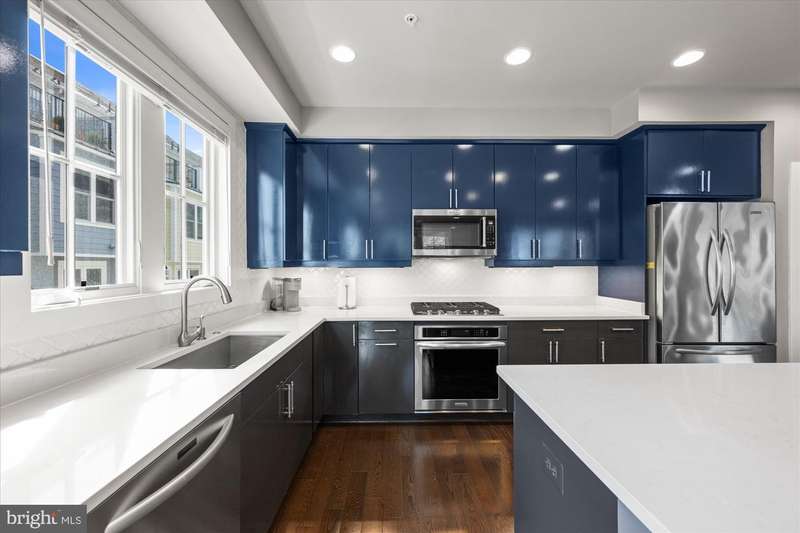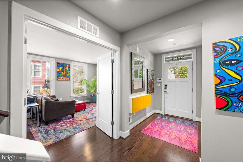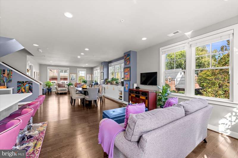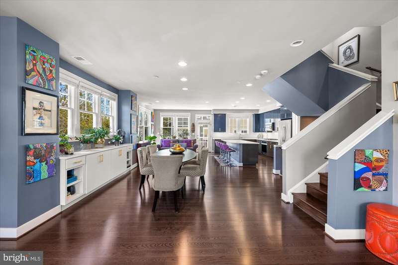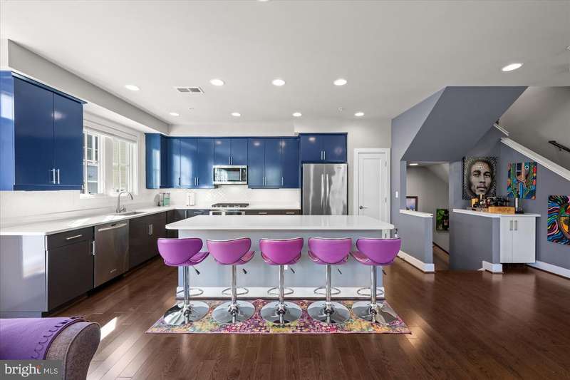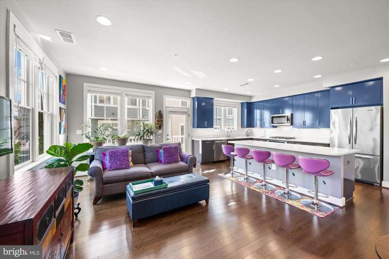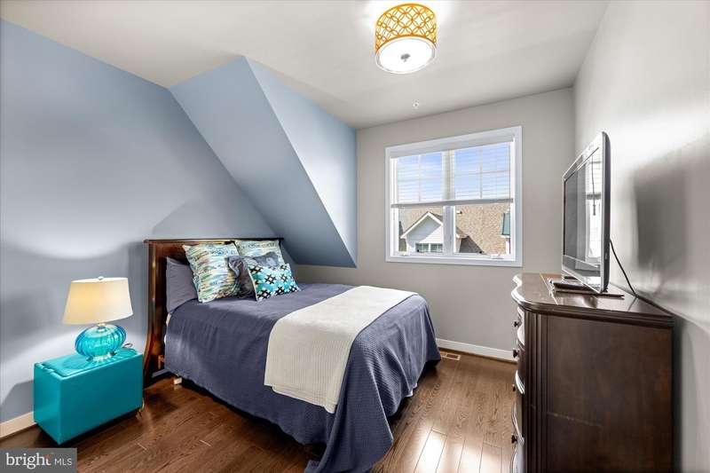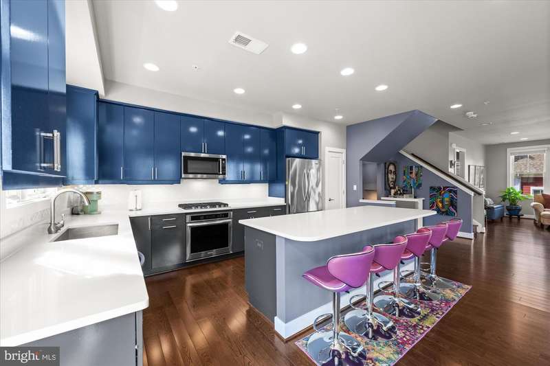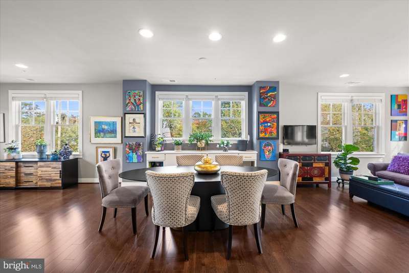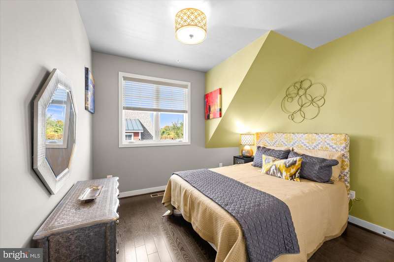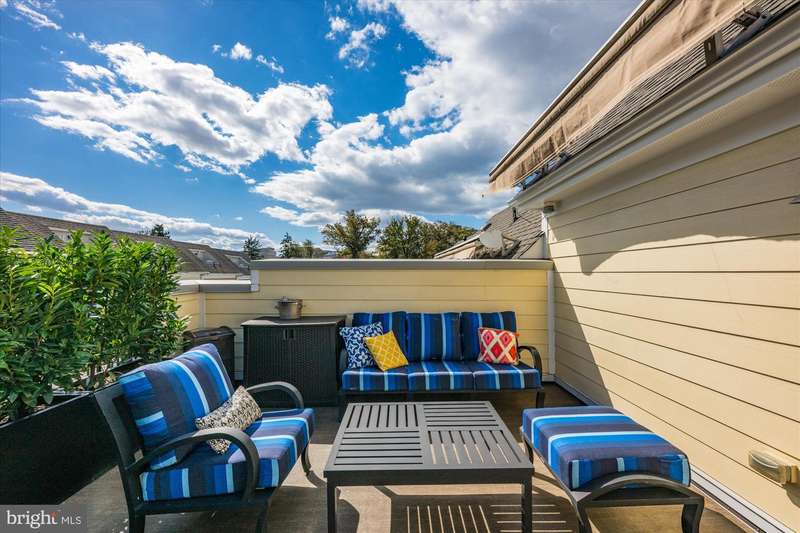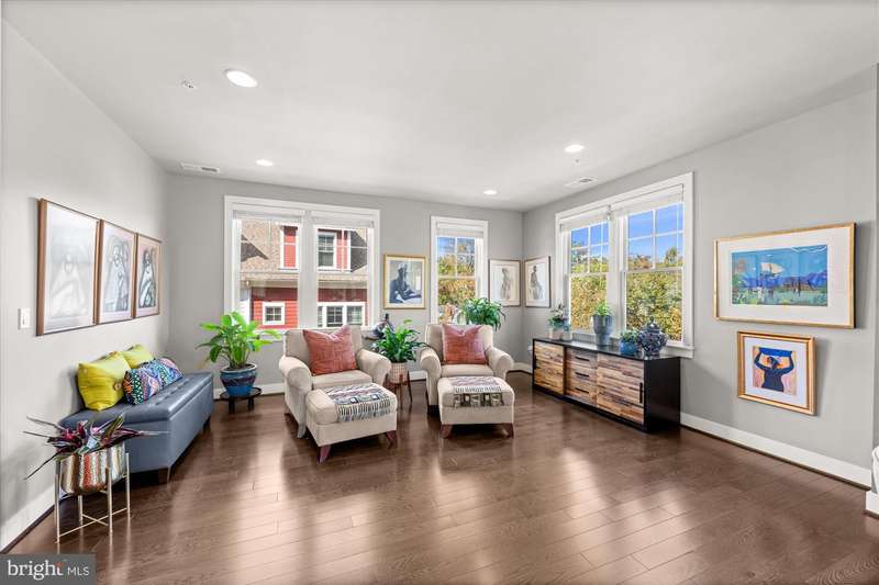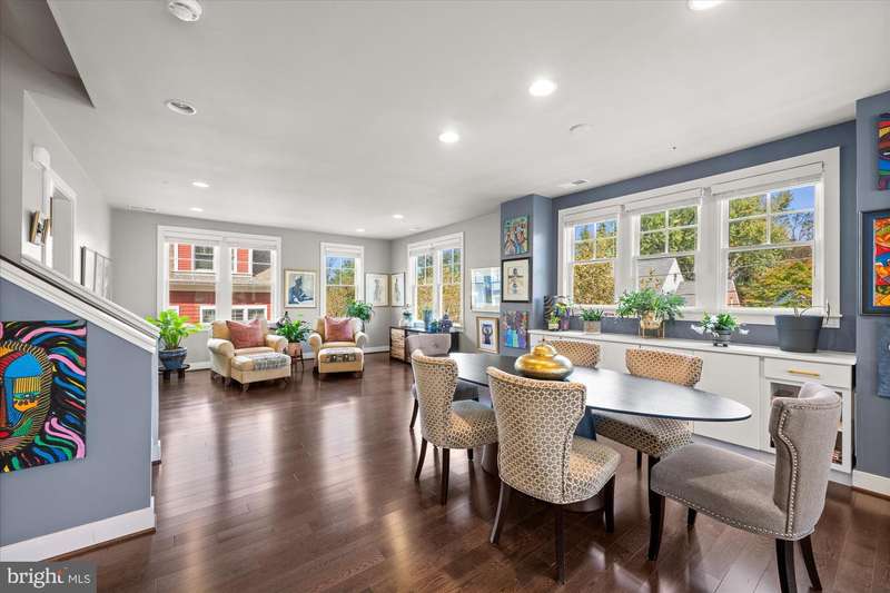 Welcome to the Crawford II Model, an end unit gem. Experience over 2,800 square feet of beautifully crafted living space in this sought-after Crawford II townhouse one of only three of its kind. Spanning four levels and featuring a two-car garage with extra storage, this exceptional home is loaded with premium upgrades and modern design touches throughout. Step onto the front porch and into a welcoming foyer that opens to a versatile entry-level space ideal as a guest suite, home office, or fourth bedroom complete with a full bathroom. This level also offers a coat closet and generous storage, along with direct access to the attached two-car garage. Flooded with natural light from 14 windows, the main level features soaring ceilings, rich hardwood floors, and an open layout perfect for entertaining. The gourmet kitchen is the heart of the home, showcasing a five-burner gas stove, expansive island with seating for six, and direct access to a balcony with a barbecue grill perfect for indoor/outdoor dining. A stylish cloffice (closet office) and a convenient half bath complete this floor. Upstairs, you'll find three spacious bedrooms and two full bathrooms. The primary suite features an en suite bath with dual vanities, tiled shower, and a professionally designed walk-in closet. Two additional bedrooms include built-in professional closet systems, and a full-size washer and dryer are also conveniently located on this level. The fourth level offers a private tree lined rooftop escape perfect for morning coffee, evening cocktails, or gatherings under the stars. A large awning with remote control provides year-round comfort, and additional storage with a beverage fridge makes entertaining easy. Situated just minutes from Downtown Silver Spring, this home offers unbeatable access to shopping, dining at numerous restaurants including Zinnia, the Metro, Whole Foods, and more. Enjoy modern luxury and urban convenience all in one incredible home