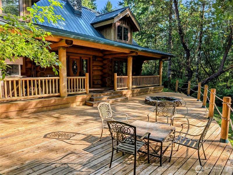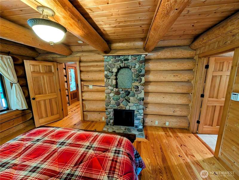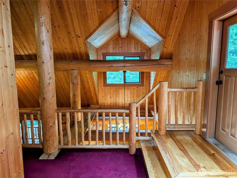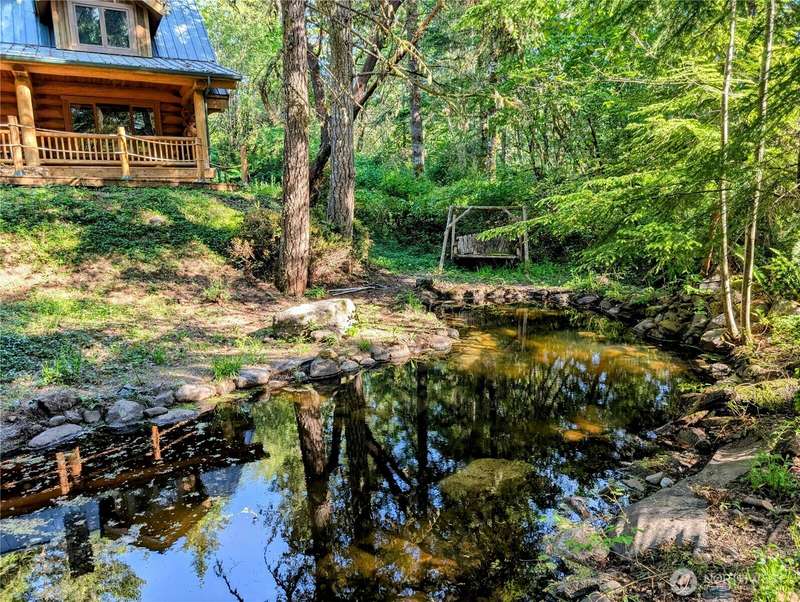 This gorgeous 2,000+ square foot log home has been finely crafted with entertaining in mind. Large decks with fire pit over looking your very own pond and beautiful, private just shy 5 acre property with giant shop. The roof top deck has a hot tub right next to the converted attic above the 2 car garage. The interior features vaulted ceilings, exposed log beam construction, in-floor heating, hardwood floors and 2 gas fireplaces for those winter evenings. Kitchen has custom cabinets and granite counters right along side of an Elmira stove and appliances with antique finishes. Located very close to salt and fresh water activities and just in between Port Orchard or Gig Harbor shopping.