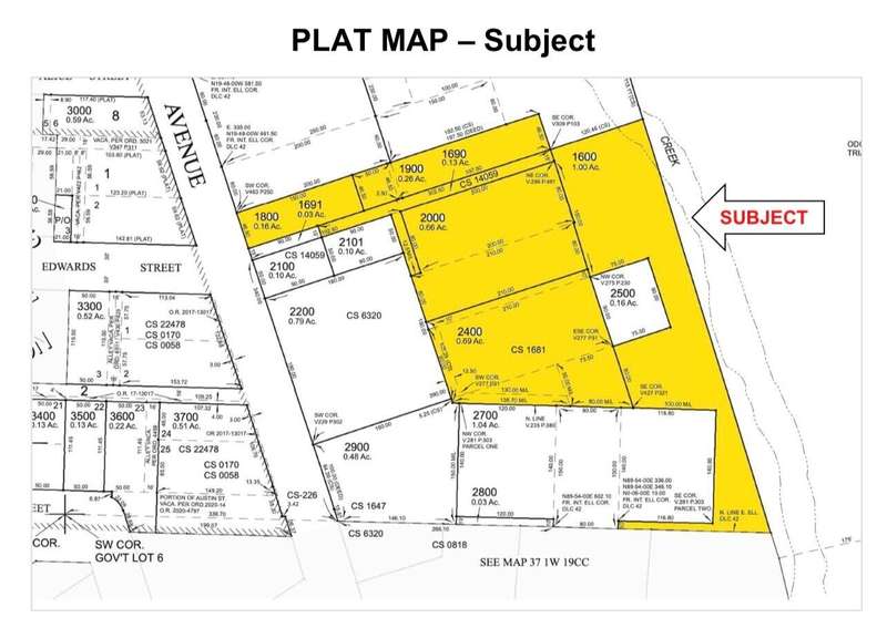 Zoned C-C (Community Commercial), this property offers a wide range of permitted uses, including multi-family residential development (MFR-30). The site is currently improved with a mixed-use facility consisting of the following structures: A 3,464 sq. ft. light industrial shop; 3 single-family residences; 2 single-car detached garages; One four-car detached garage; One attached four-car tandem garage. Improvements were constructed between 1948 and 1998 and are of wood-frame construction. Site enhancements include asphalt and concrete paving, perimeter fencing, and multiple storage sheds. The property spans six tax lots, comprising a total of 2.90 acres (126,324 sq. ft.). Of this, the net developable area is 1.98 acres (86,314 sq. ft.). Tax Parcels included are: 10703644, 10328558, 10328614,10328517, 10328541, 10328566. Site addresses: 824-902 N Riverside Ave., Medford.
