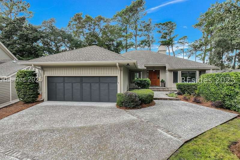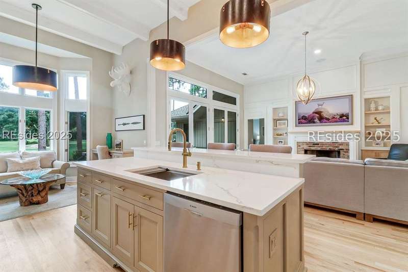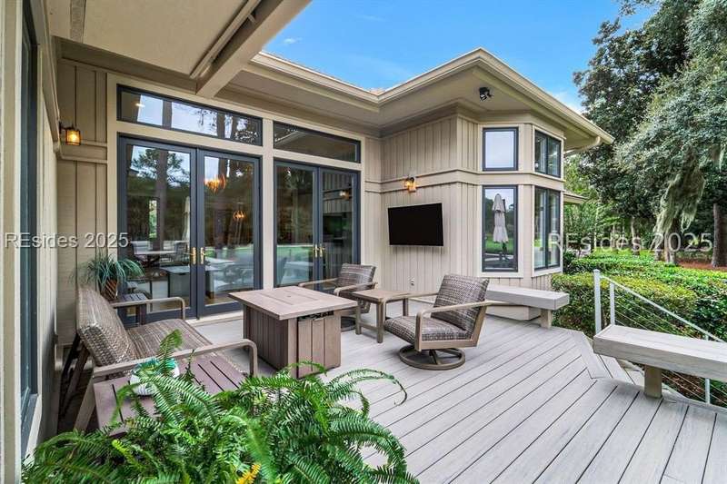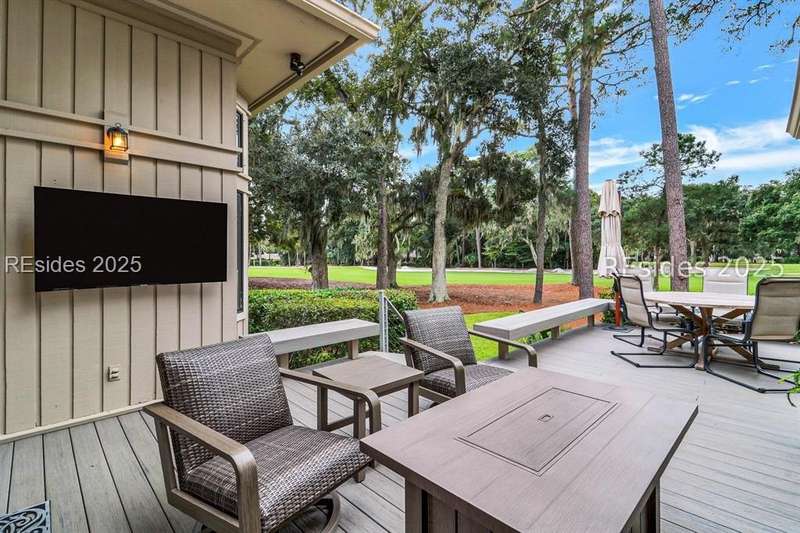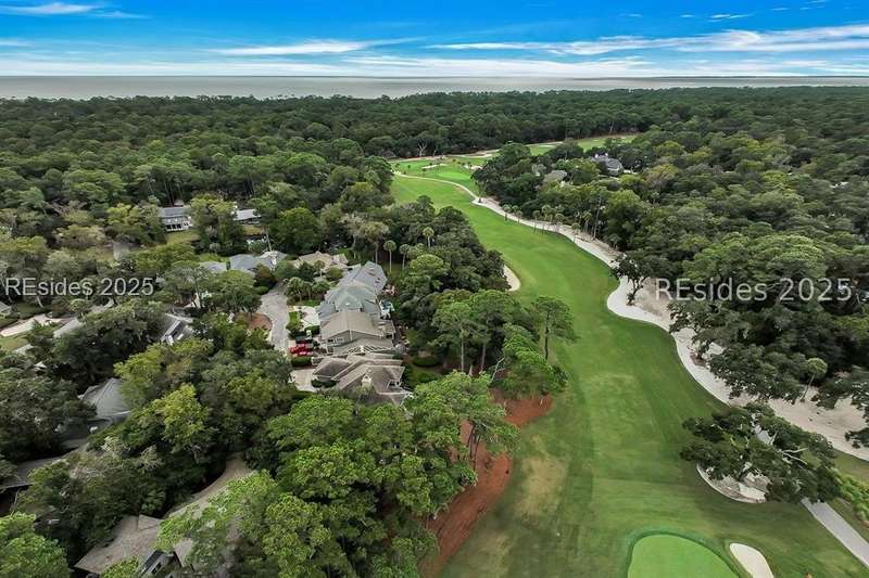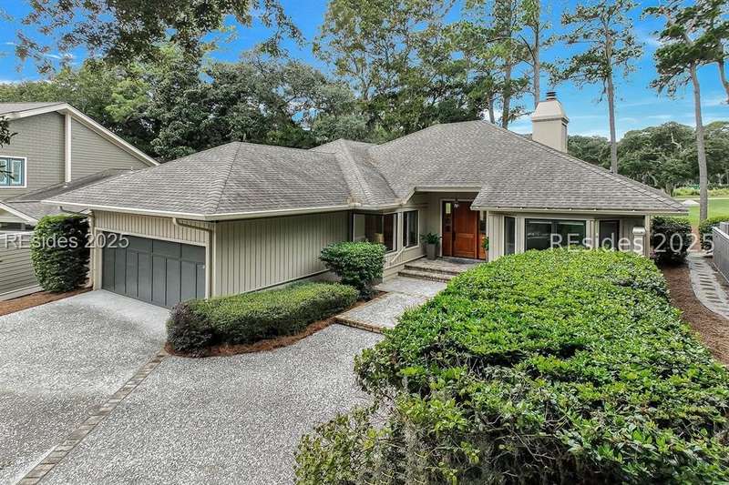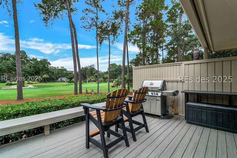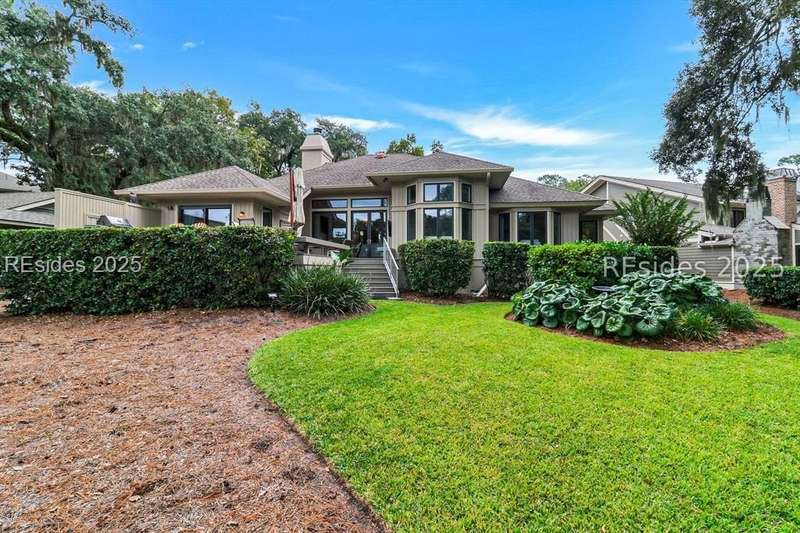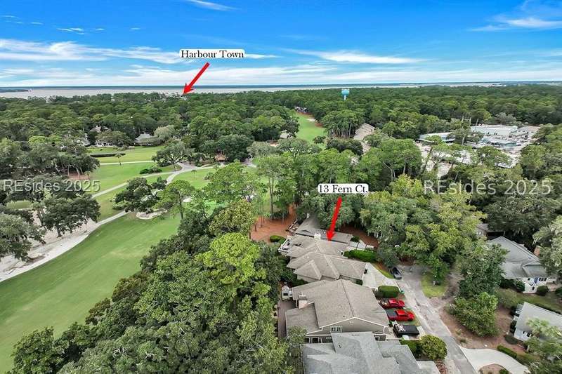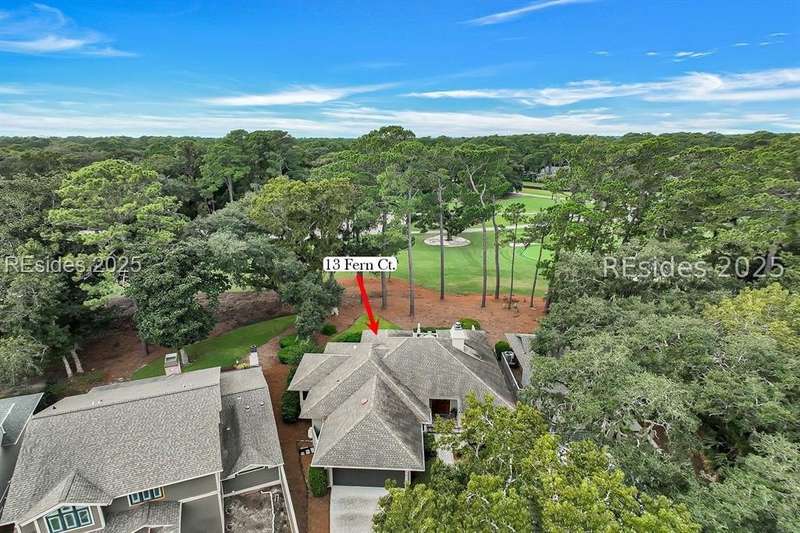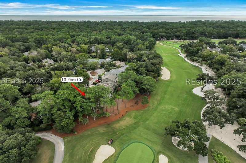 This exceptional 3-bedroom, 3-bath coastal retreat offers panoramic golf views of Harbour Town's famed #6 and #7 fairways and the #2 and #3 greens. Filled with natural light, the open floor plan features soaring ceilings, rich hardwood floors, and a seamless flow between living, dining, and kitchen areas. The newly renovated (2024) kitchen is stunning-complete with quartz countertops, soft-close cabinetry, decorative ceiling beams, and Wolf & Bosch appliances. The inviting great room includes a gas fireplace, while the flexible den can serve as a 4th bedroom or home office, both enjoying incredible golf vistas. The spacious owner's suite offers privacy, beautiful views, and a spa-like bath. Two guest suites provide comfort for family and friends. A new Trex deck overlooks the course, offering the perfect setting for outdoor relaxation and a front-row seat to the RBC Heritage Golf Tournament. Located in the heart of Sea Pines between Harbour Town and the Atlantic Ocean, residents enjoy community amenities including pool, tennis, playground, and basketball-plus easy access to beaches, shopping, and dining. Whether a primary residence, vacation home, or investment property, 13 Fern Court perfectly captures the best of coastal Lowcountry living.
