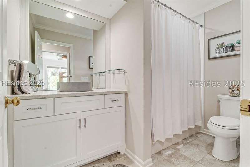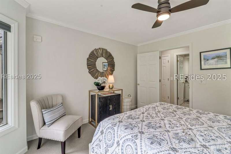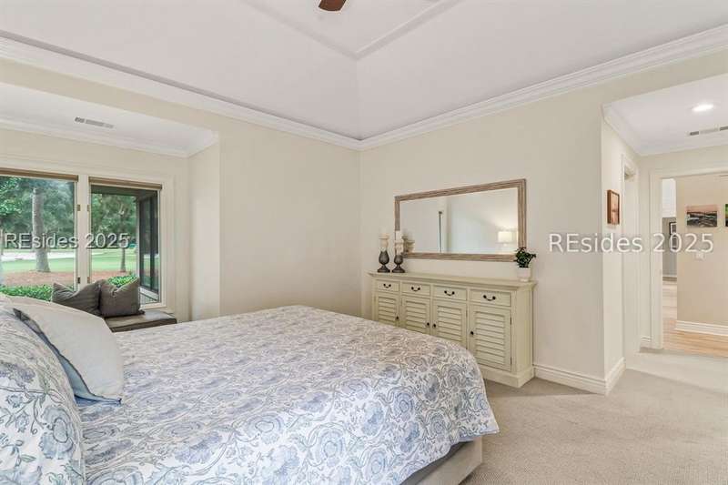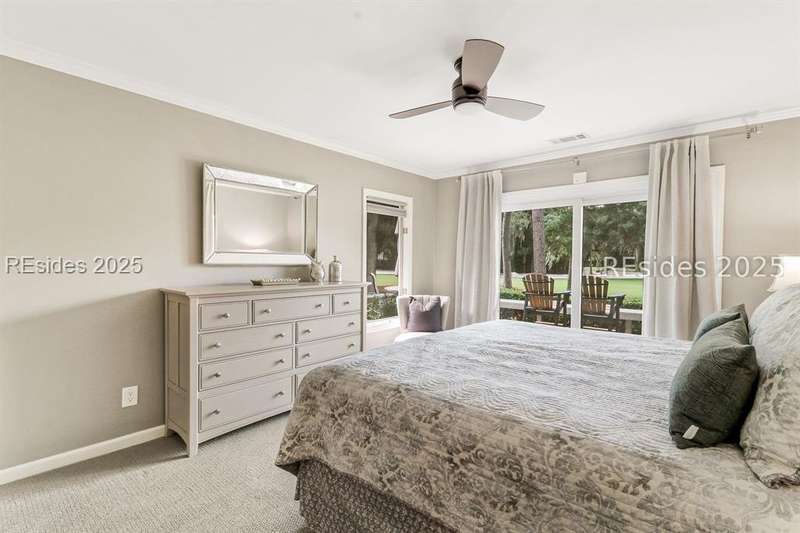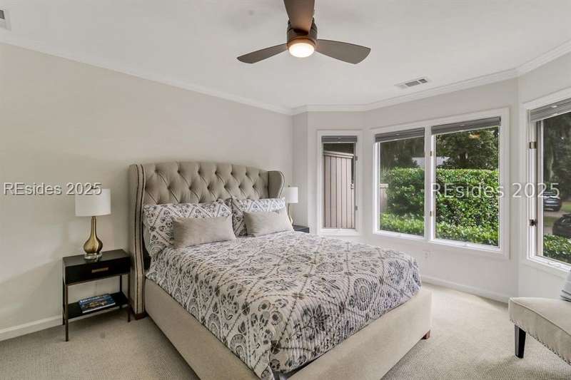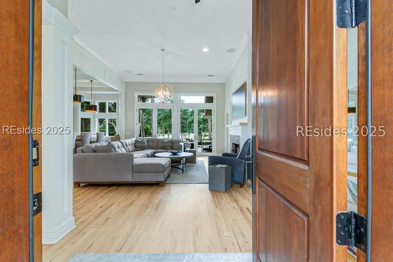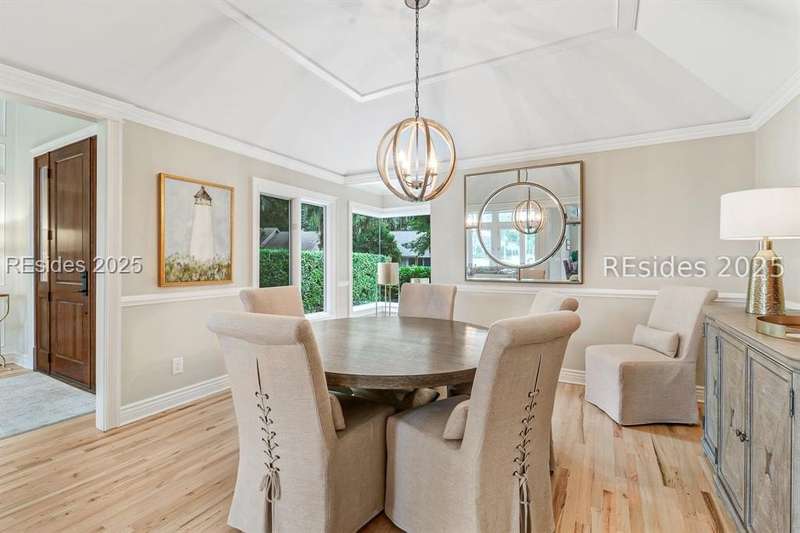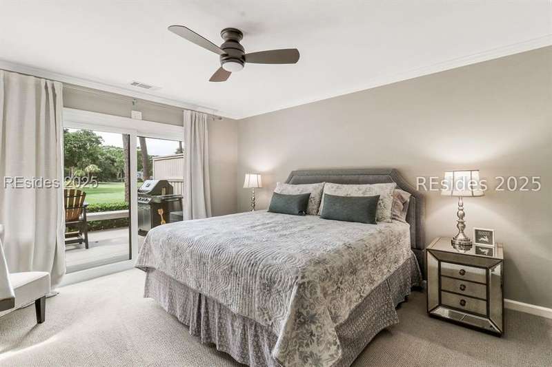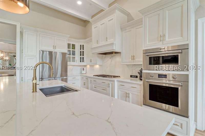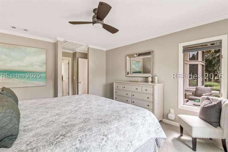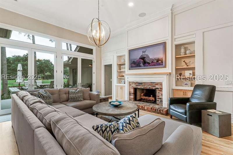 This exceptional 3-bedroom, 3-bath coastal retreat offers panoramic golf views of Harbour Town's famed #6 and #7 fairways and the #2 and #3 greens. Filled with natural light, the open floor plan features soaring ceilings, rich hardwood floors, and a seamless flow between living, dining, and kitchen areas. The newly renovated (2024) kitchen is stunning-complete with quartz countertops, soft-close cabinetry, decorative ceiling beams, and Wolf & Bosch appliances. The inviting great room includes a gas fireplace, while the flexible den can serve as a 4th bedroom or home office, both enjoying incredible golf vistas. The spacious owner's suite offers privacy, beautiful views, and a spa-like bath. Two guest suites provide comfort for family and friends. A new Trex deck overlooks the course, offering the perfect setting for outdoor relaxation and a front-row seat to the RBC Heritage Golf Tournament. Located in the heart of Sea Pines between Harbour Town and the Atlantic Ocean, residents enjoy community amenities including pool, tennis, playground, and basketball-plus easy access to beaches, shopping, and dining. Whether a primary residence, vacation home, or investment property, 13 Fern Court perfectly captures the best of coastal Lowcountry living.