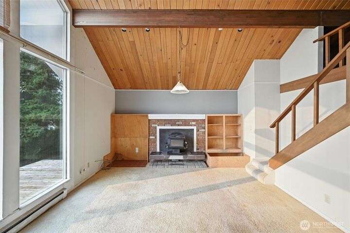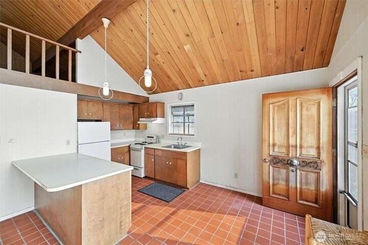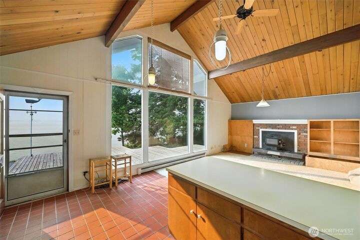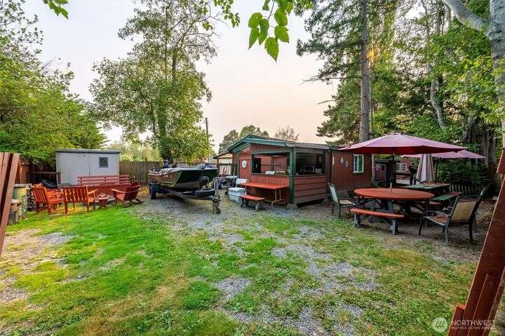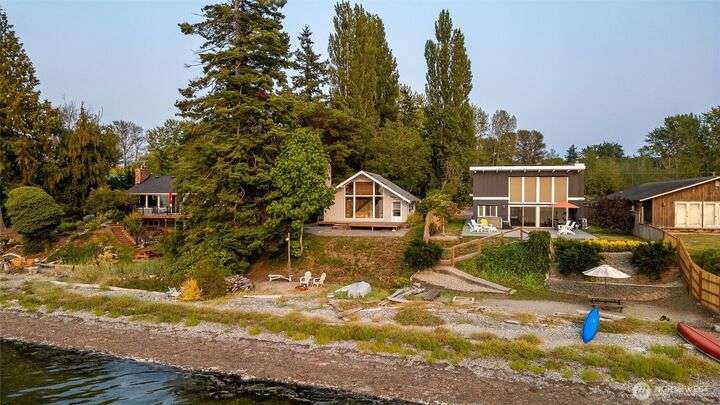 Enjoy stunning sunsets from this west-facing waterfront property featuring 48 feet of beachfront! The 2 bed, 1 bath main house sits on nearly 3/4 of an acre with multiple outbuildings offering incredible potential. Originally built in 1966 as one of the first homes in Boynton Sunset Tracts, it's ready for your vision. Vaulted tongue-and-groove ceilings throughout, a spacious back deck, firepit, and mature landscaping add charm. One outbuilding includes a kitchen, bedroom, and washer/dryer-perfect for guests or extended living.