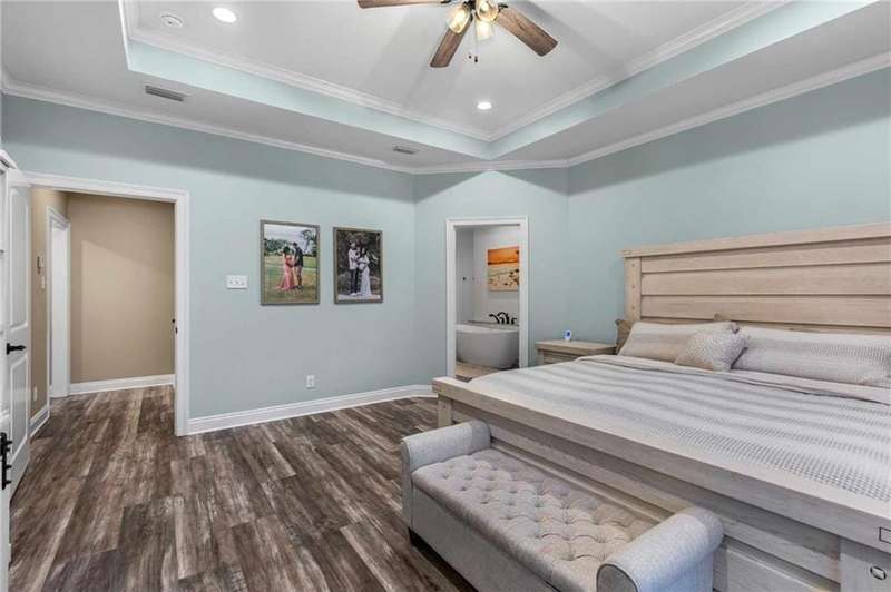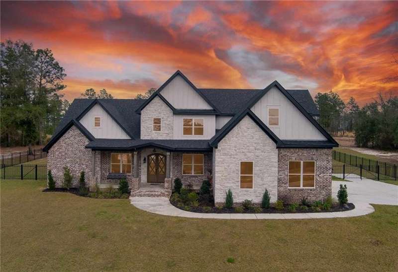 Welcome to this stunning custom home in the gated Celeste Springs community. Built in 2023 on over 3 acres, this 5-bedroom, 7-bath home offers luxury and privacy. The open-concept main floor features vaulted ceilings, a gourmet kitchen with an antique brick backsplash, a 6-burner gas range, and a hidden walk-in pantry. The primary suite boasts a spa-like bath with a freestanding tub, walk-in shower, and dual closets. Upstairs, two bedrooms with private ensuites accompany a theater, gym, and loft with a bar. This home also features a gated backyard, and an oversized three-car garage. Showing by appointment only. 24-hour notice required. All showing requests must have preapproval and/or proof of funds. Don't miss this incredible property. Schedule your private showing today! Buyer responsible for verifying all measurements and relevant details.