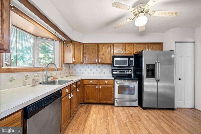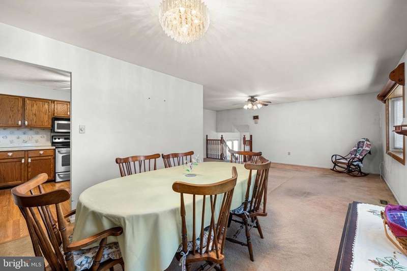Welcome to this spacious raised ranch situated on a desirable corner lot, offering a wonderful blend of comfort, function, and updates. The inviting main level features a large living room that flows seamlessly into the oversized dining room, creating the perfect space for gatherings and entertaining. The eat-in kitchen is well-appointed with stainless steel appliances, a stylish tile backsplash, and luxury vinyl flooring. The primary bedroom boasts a charming bay window and a private bath with shower. The entry foyer is both practical and impressive, highlighted by ceramic tile flooring and two oversized coat closets for abundant storage. Price reflects condition. The lower level expands the living space with a warm and inviting family room complete with a cozy fireplace, a 4th bedroom or home office, a convenient powder room, and a laundry/workshop area. The attached two-car garage with openers provides easy access and additional storage. Notable updates include replacement windows throughout, a Lennox HVAC system installed in 2019, a roof replaced in 2009, and a sump pump for peace of mind. Outdoor living is enhanced by a deck and a storage shed, perfect for enjoying the backyard. This home offers the space, updates, and versatility today's buyers are looking for-don't miss the opportunity to make it yours! Price reflects condition.
