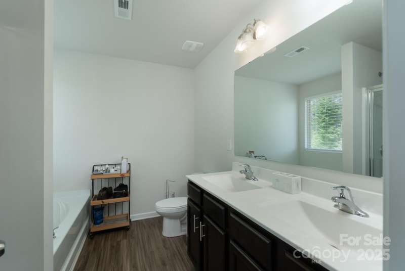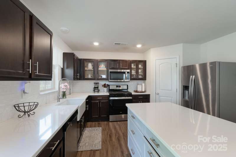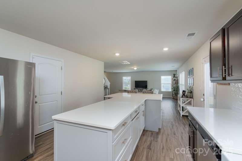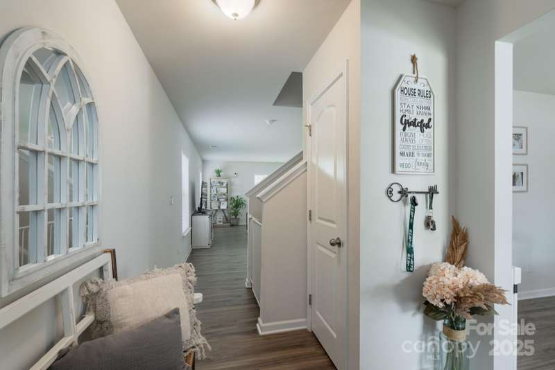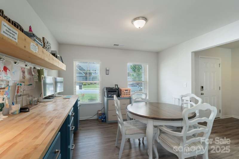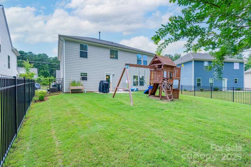 Welcome home to this four-bedroom beauty with personal touches that are sure to impress you! The main level features an open floor plan that is perfect for entertaining. Quartz counter tops, stainless appliances, tile backsplash, and a ceramic farmhouse sink provide a fabulous kitchen that overlooks the family room and is highlighted by a custom island with counter seating area as well as tons of storage. A separate dining room with office option and a powder room complete the main level. Upstairs is home to the primary bedroom, three additional bedrooms, and a loft area. Check out the custom closet in one of the secondary bedrooms and the decorative board and batten wall in another bedroom. The primary bedroom provides double closets as well as a large en suite bath. The backyard has a black aluminum fence (two entrance gates) providing a great outdoor space. A double garage is an added bonus to this wonderful home. The HOA includes lawn upkeep, irrigation, and garbage collection.