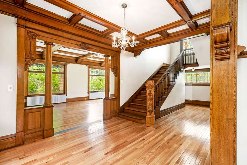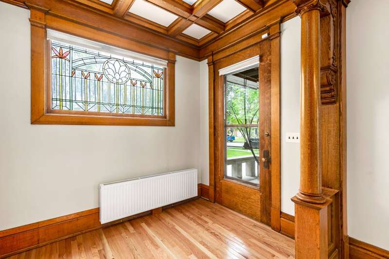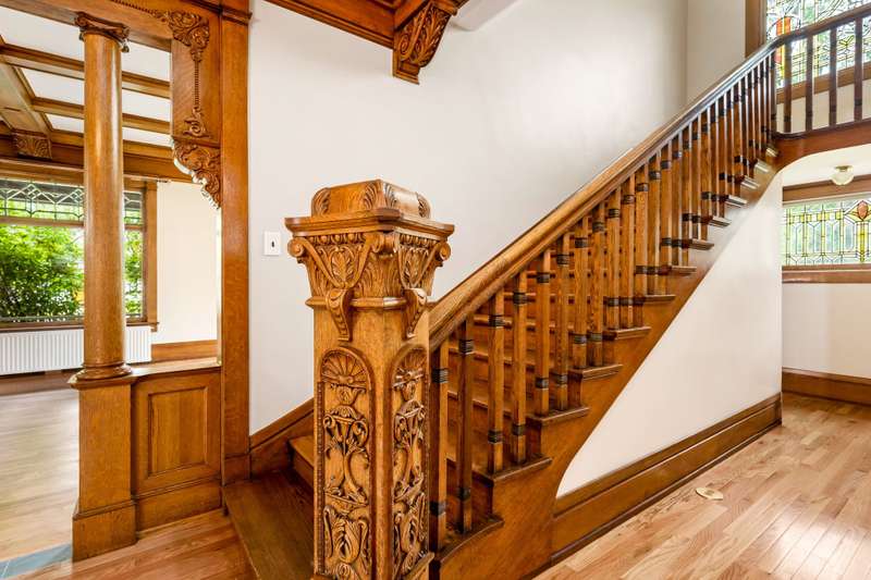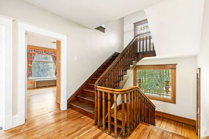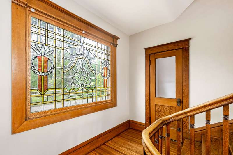 Majestic Brick Home that has never been on the market. Amazing one of a kind stained and beveled glass windows throughout. Gorgeous woodwork adorns the main level, A grand staircase with a beautiful intricate Newel Post. Grand Livingroom with gas fireplace, built in bookshelves with huge beveled windows for a bright room. Lovely Formal Dining Room with built in hutch. Nice size kitchen with laundry and storage in the ajoining room. Large bedrooms on the 2nd and 3rd floors. Basement has a family room and fireplace and finish the way you like. Amazing covered porch to enjoy your summer evenings.
