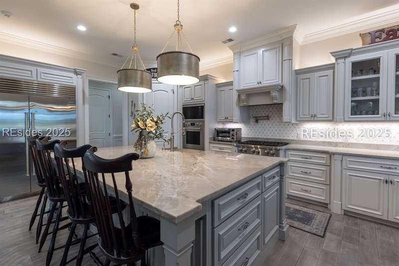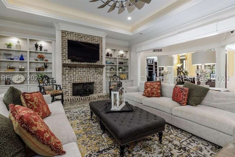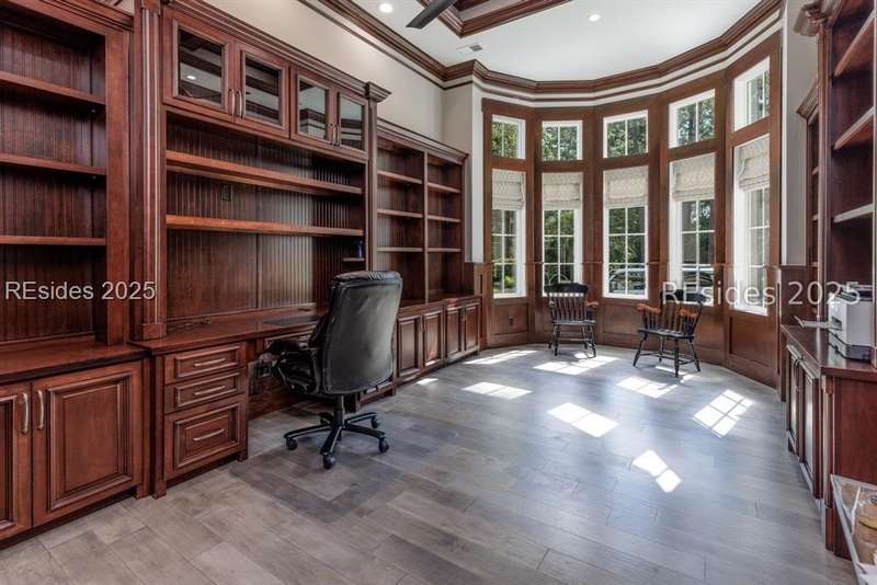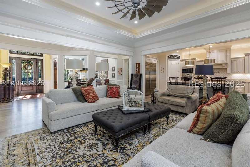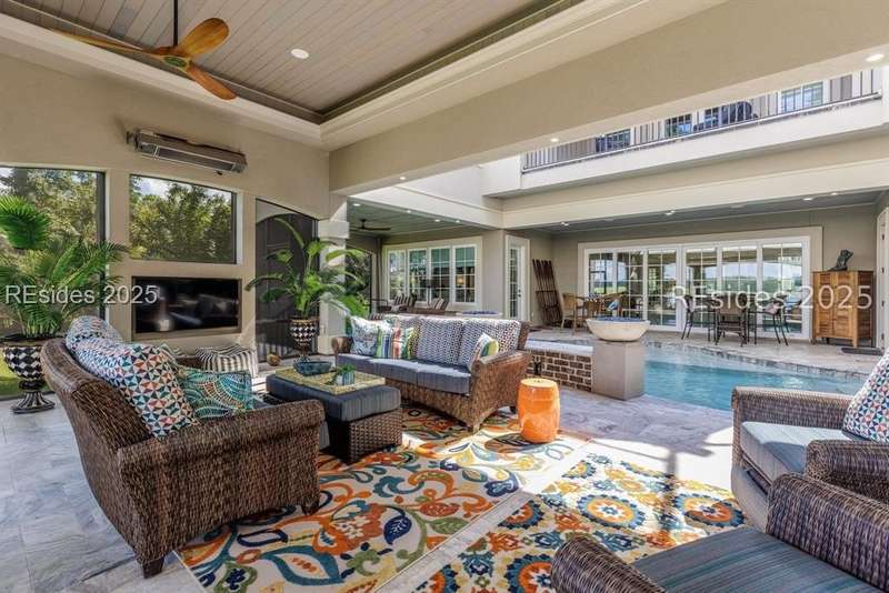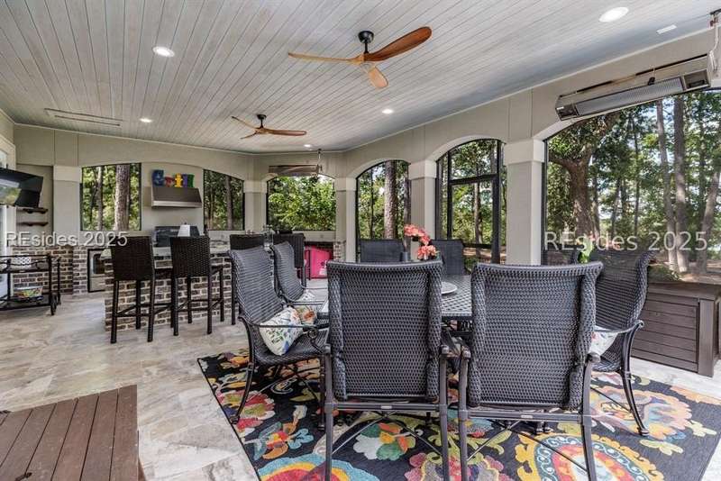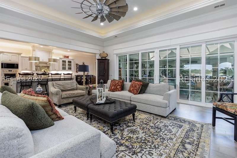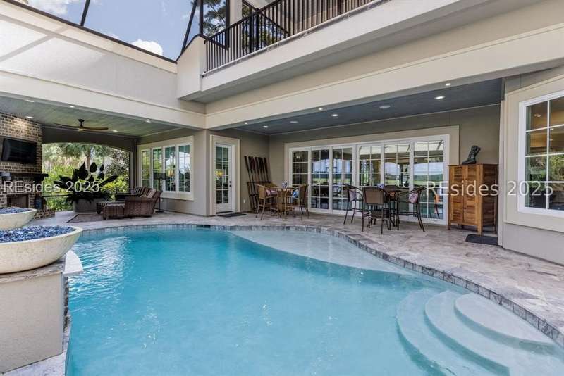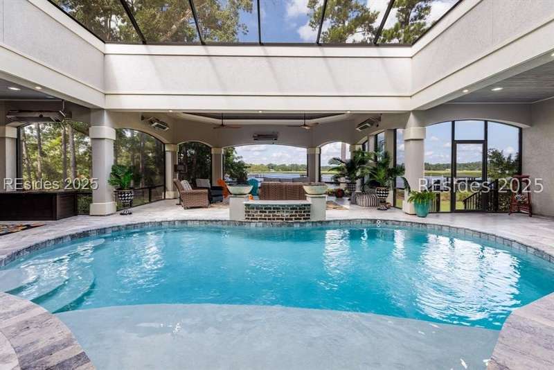 Experience the best of Lowcountry living in this exceptional estate home, perfectly positioned on nearly an acre and a half of prime deepwater property within the prestigious, gated community of Berkeley Hall in Bluffton, South Carolina. Built in 2019, this custom 5,425 sq. ft. residence combines timeless elegance with modern craftsmanship and every luxury feature you could imagine.Step inside to discover a thoughtfully designed floor plan with 4 spacious bedrooms, 4 full baths, and 2 half baths, offering both comfort and privacy for family and guests. Soaring ceilings, walls of windows, and refined architectural details highlight the homes open and airy living spaces. A gourmet chefs kitchen, expansive great room, and elegant dining areas make entertaining effortless.Outdoors, your private paradise awaits. Situated on a premium deepwater homesite, the property includes a private dock with boat lift, making it ideal for boating enthusiasts and sunset cruisers. The screened lanai is equally captivating, featuring a resort-style pool and spa, gathering area and outdoor kitchen. Enjoy panoramic west-facing views, ensuring some of the most breathtaking sunsets in the Lowcountry. Every detail has been carefully considered in this home from its high-end finishes to ample storage and versatile spaces designed for todays lifestyle. Rarely does a property of this caliber, on such an oversized premium lot, become available within Berkeley Hall a private, gated golf and lifestyle community known for its two world-class Tom Fazio courses, fitness center, spa, walking trails, and vibrant club life.This is more than a home its a Lowcountry dream.