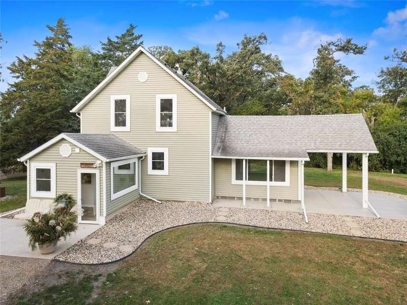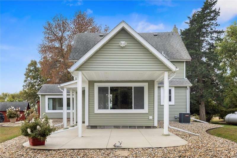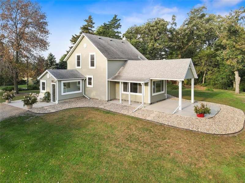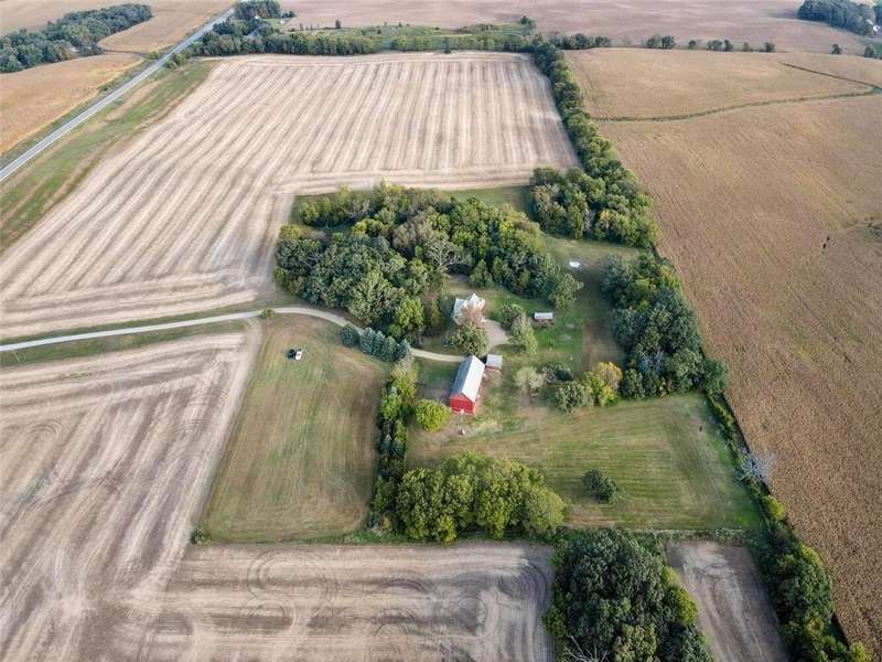 Stunning remodeled 1900’s farmhouse on 12 private acres. Every detail was handcrafted to blend old-time charm with modern finishes. Features include hickory floors, knotty pine, custom barn doors, tin accents, and a spacious, inviting layout. Outbuildings include 2 detached garages, a large red barn, tractor shed, chicken barn, and storage shed. Fruit trees and berry bushes surround the home, with 5 acres of hay ground and fenced pasture for animals. Originally 3 bedrooms, now 2 oversized rooms upstairs with a main-floor sunroom that can convert to a bedroom. Equipped for off-grid living with wood, corn/pellet, and updated forced-air heat plus central air. Recent updates: new well mechanics, septic mound system, siding, windows, and roof. Enjoy peaceful privacy, abundant wildlife, and quick access to I-35 & I-90. The barn offers endless potential—workspace, living space, or livestock. See all picture captions for more detail and information. Don’t miss this rare 12-acre gem.