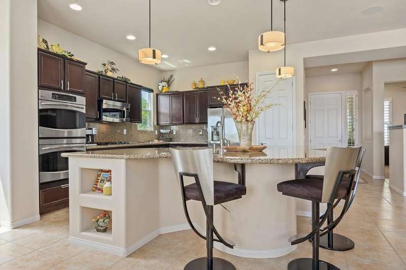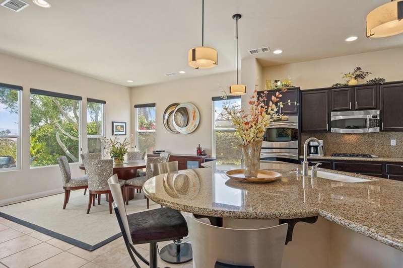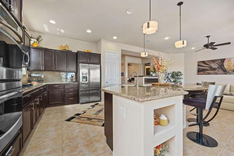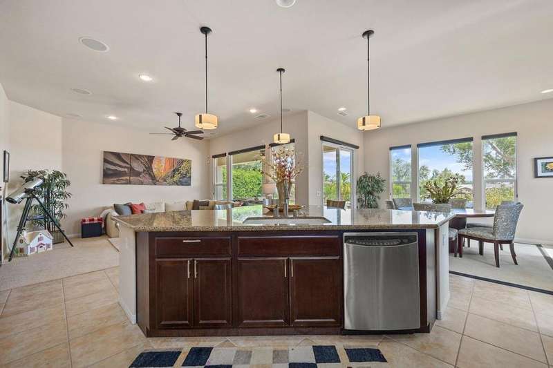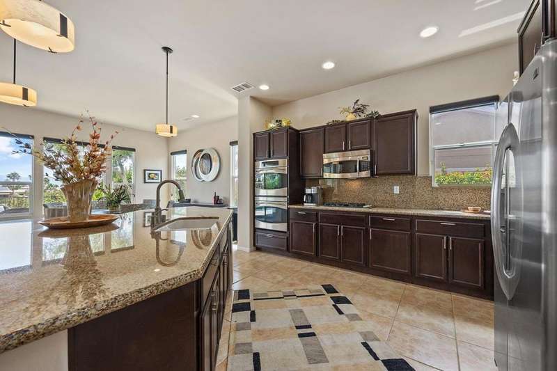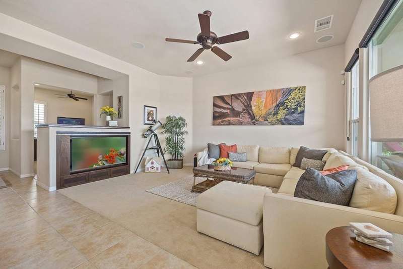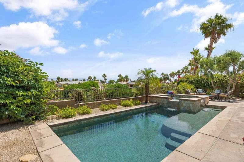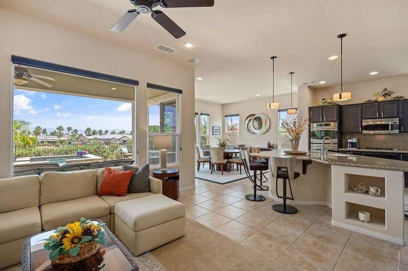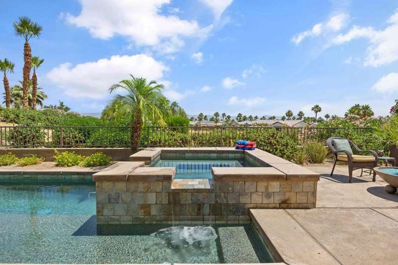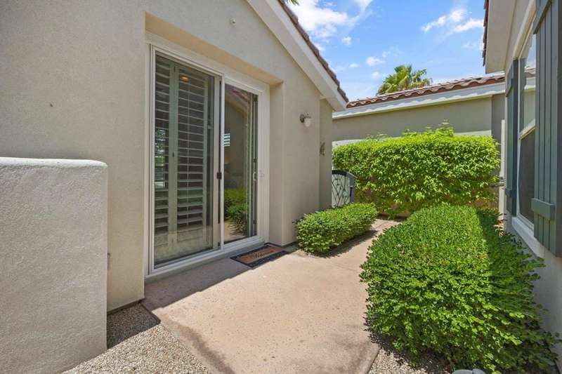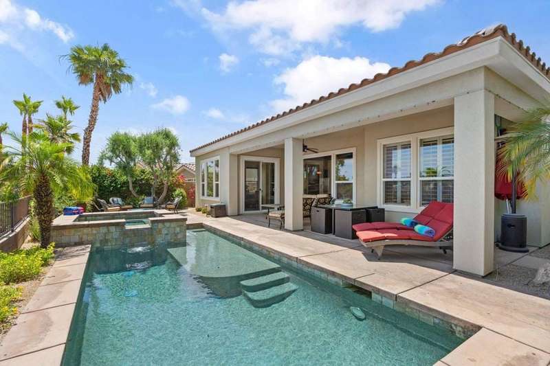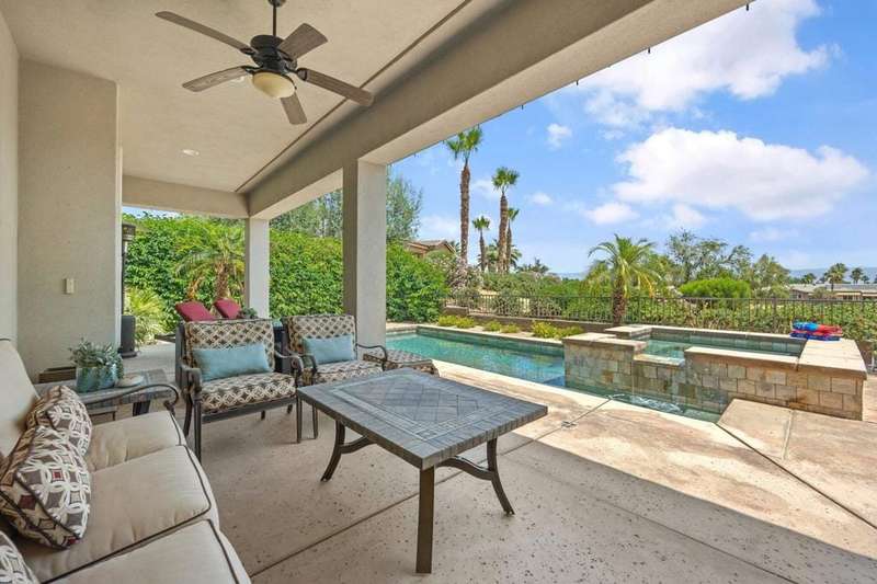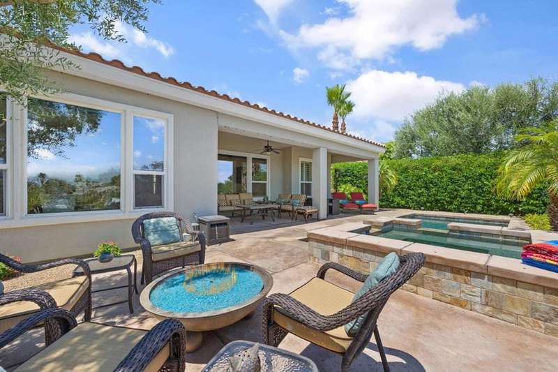 BOOKED JAN/FEB 2025. RENTED 1-126 thru 2-28-26. Owner rents property each JAN/FEB only. Set against the backdrop of the beautiful Coral Mountain, home away from home is welcoming you to Trilogy La Quinta a 55 and older community, one of the top in the valley. The amenities abound and the beauty is breathtaking. This warm and inviting home is well equipped with everything you will need to enjoy your get away. The kitchen and living room are so inviting and great for entertaining. Featuring a double oven, gas stovetop, a wine refrig, a Bose stereo and surround sound for your TV viewing. The master bedroom is a sanctuary unto itself. Decorated with light colors it is peaceful setting to open a book or take a nap whatever your heart desires. The spare bedroom is also a great place to rest and relax with its own convenient bathroom. The third bedroom, the casita, is detached and private and also decorated for optimal relaxation. With a TV, Refrigerator and its own bathroom. Open the sliding door to your own vacation oasis where you will be enticed by the beautiful pool and spa and mesmerized at the sunsets and star filled skies as you enjoy them sitting at a cozy firepit. The front door view is of Coral Mountain and never disappoints with its dramatic peaks against a truly mesmerizing clear blue sky.