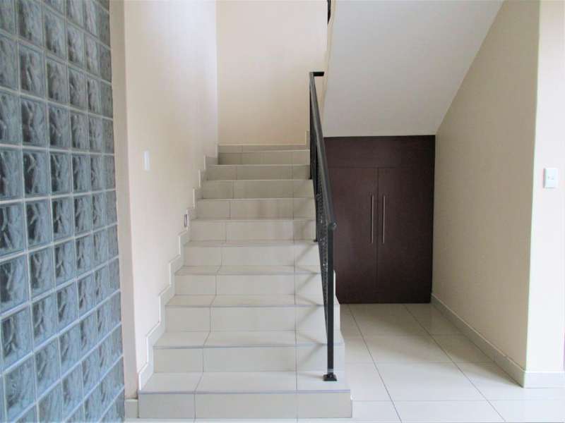 Stunning double storey in Secure Complex This property offers 4 spacious bedrooms all en suite, 3 lining areas and lovely modern kitchen with scullery. Double garage and carports. Jojo tank and garden. Situated in Secure Complex giving you peace of mind. Near all amenities and gives easy access to main routes. Call me today to book your viewing appointment.