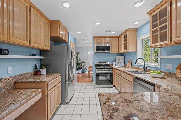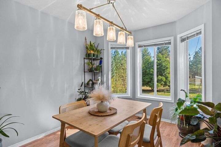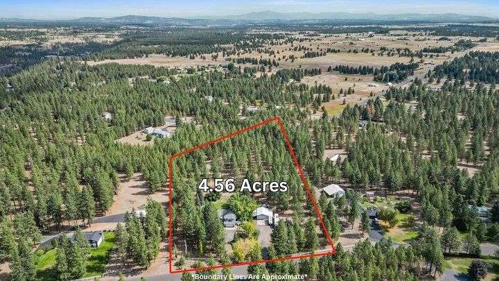 You wont believe it until you see ! Paved Road, pristine neighborhood, best kept secret. Move-in ready. Just minutes from Fairchild AFB and 20 min to downtown Spokane, this 2-story beauty with a finished daylight basement offers space, comfort, & versatility. The main floor’s open kitchen & family room with gas fireplace flow to a large covered deck—perfect for entertaining or soaking in tranquil acreage views. Upstairs features 4 bedrooms, including a generous primary suite w/ private bath. The basement boasts a spacious rec room, guest suite, bath, & outside entrance to the brick patio for private retreats. Outside, enjoy a 2-car garage, 26’x30’ heated shop w/ shelving, two 10x30 lean-toos, car hoist, compressor, plus a 200 sq ft garden shed. On a paved road with 2 driveways w/ room for horses or animals, this property combines peaceful privacy with quick access to shopping, dining, and city amenities. A rare blend of country charm and modern convenience awaits.Two driveways/one houses big trailer.