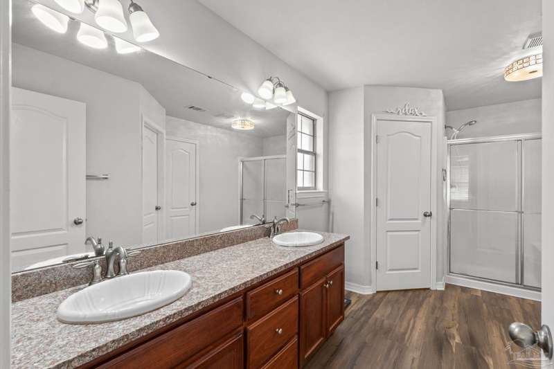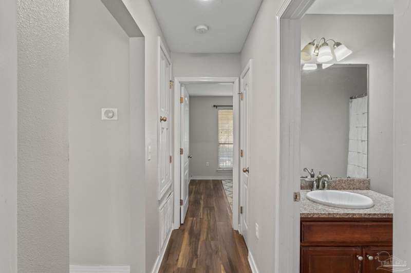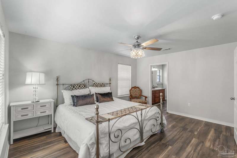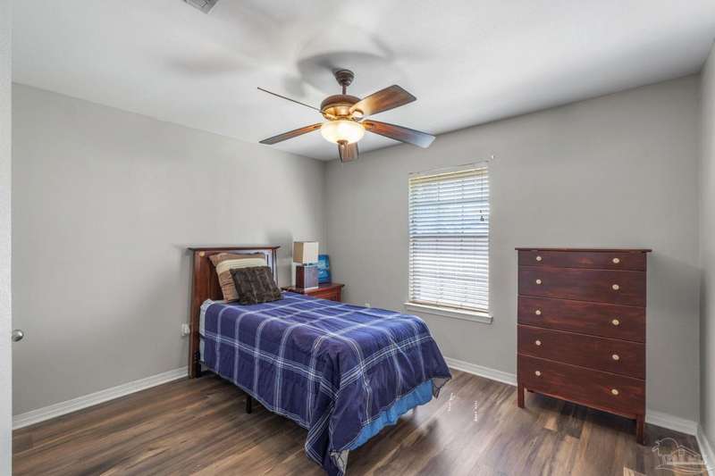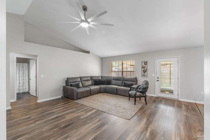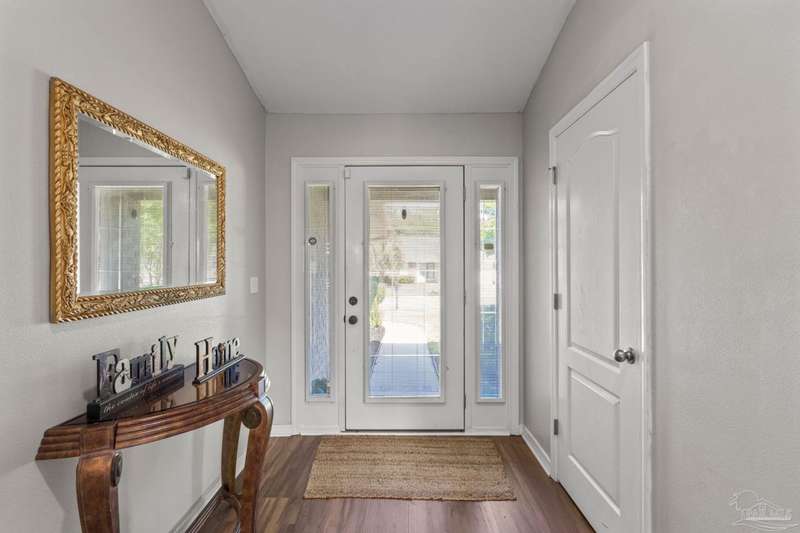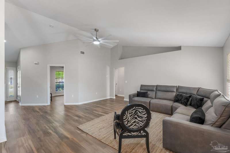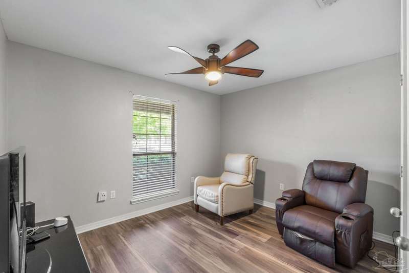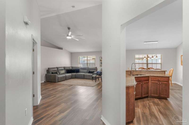 Welcome to your Bay Side retreat in the heart of Santa Rosa County! This 4 bedroom, 2 bath home sits on a corner lot in a tucked away, private community, just half a mile from the Bay. As you step inside, you're greeted by a bright living area with smooth vaulted ceilings overhead. New luxury vinyl plank flooring flows throughout, complemented by fresh paint, recessed lighting, and updated lighting fixtures in each room. The kitchen offers generous granite countertop space and an open layout, perfect for both everyday meals and entertaining friends. Four spacious bedrooms provide plenty of room for family, guests, or a home office. Outside, a widened driveway allows for additional parking, making room for extra vehicles or a golf cart. The sizable yard features a sprinkler system for easy lawn maintenance, and an 8x16 workshop/shed-complete with power, providing versatile space for hobbies or storage. Perhaps best of all, this home is within walking distance to the Bay and it's wonderful paved multi-use path that connects Gulf Breeze and Navarre. Discover the perfect blend of convenience, comfort and coastal charm-schedule your showing today!