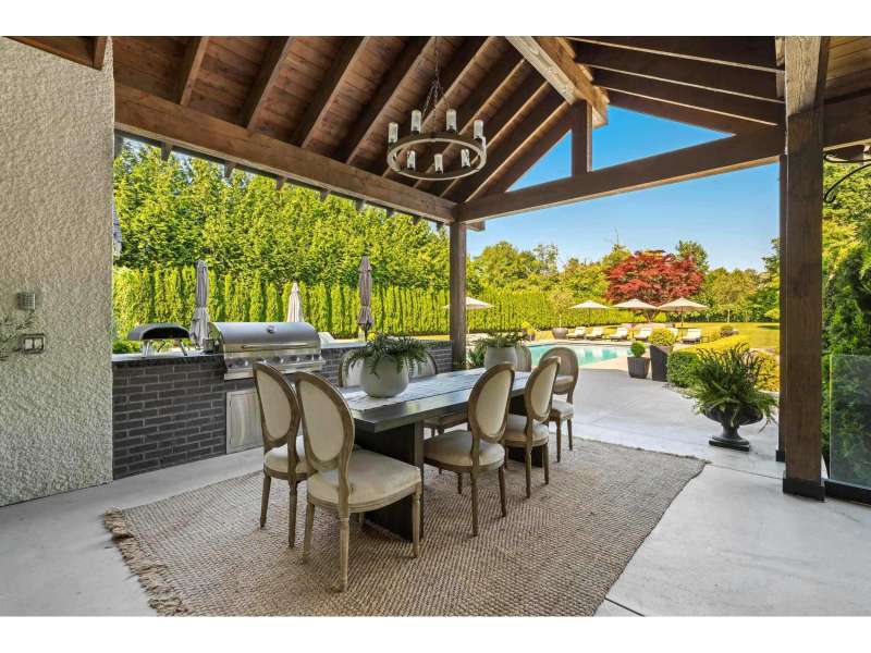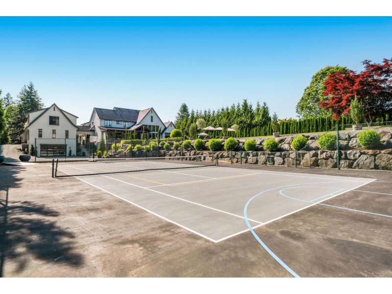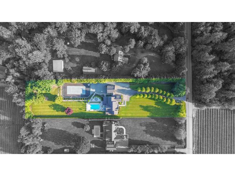 One of Langley's finest gated estates on 2.5 private, manicured acres. This immaculate custom estate is built by Ridgewest Homes, and designed by Su Casa. A perfect blend of luxury, comfort, and function, 8 beds, 7 baths, primary on the main, vaulted great room, private temp controlled wine/scotch tasting room, gym, theatre, plus a 1-bed suite. Unique underground tunnel leads to a bunker-style garage. Resort-style backyard with 20x40 concrete pool, built-in hot tub, California-style sport court, firepit, and covered patio with full outdoor kitchen and fireplace. 6 covered parking. Plans avail for accessory building, build your dream barn or shop! Minutes to Fort Langley, Thunderbird, and HWY 1. A true dream estate built for family, entertaining, and refined country living. (id:58403)