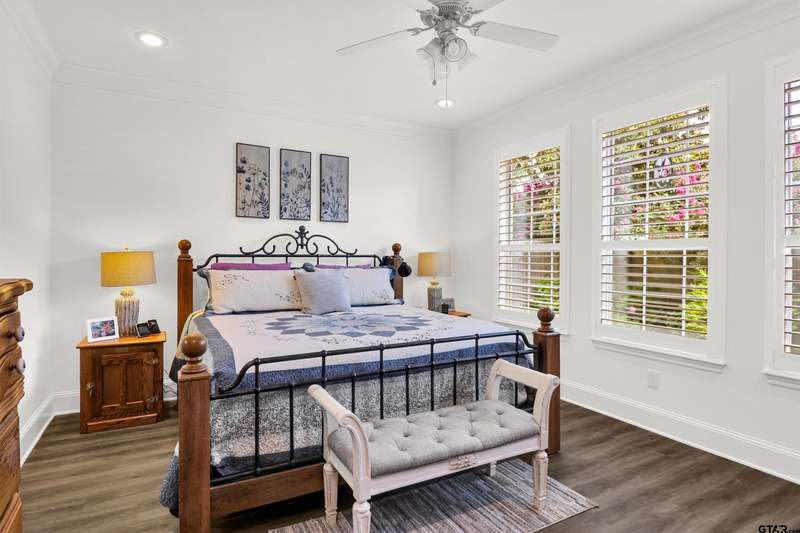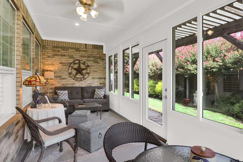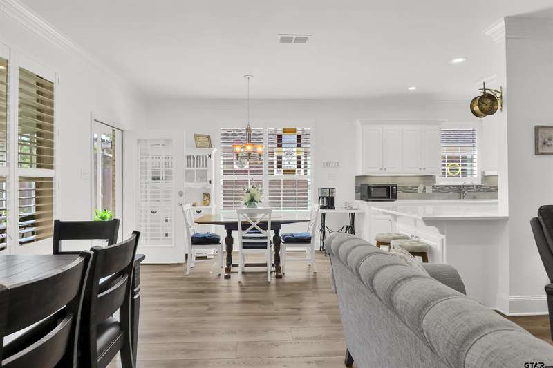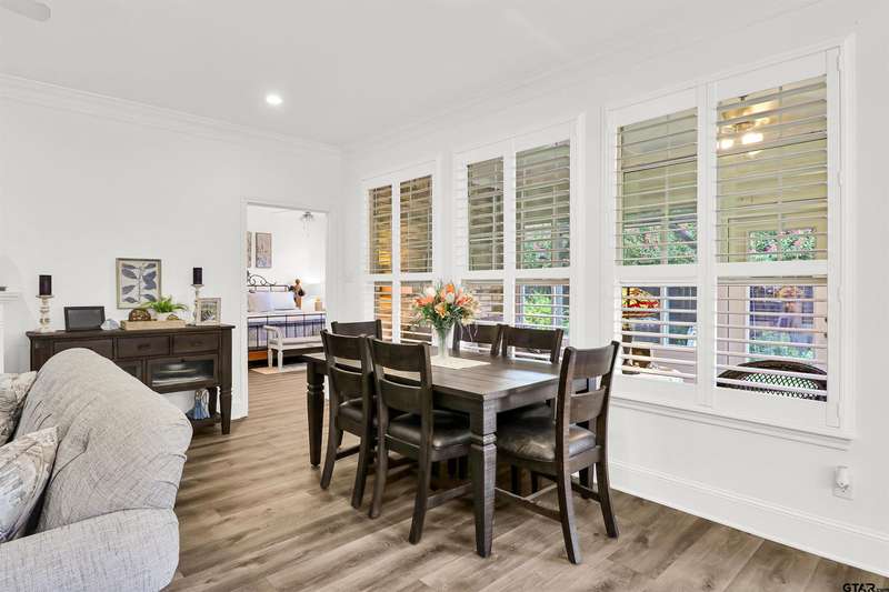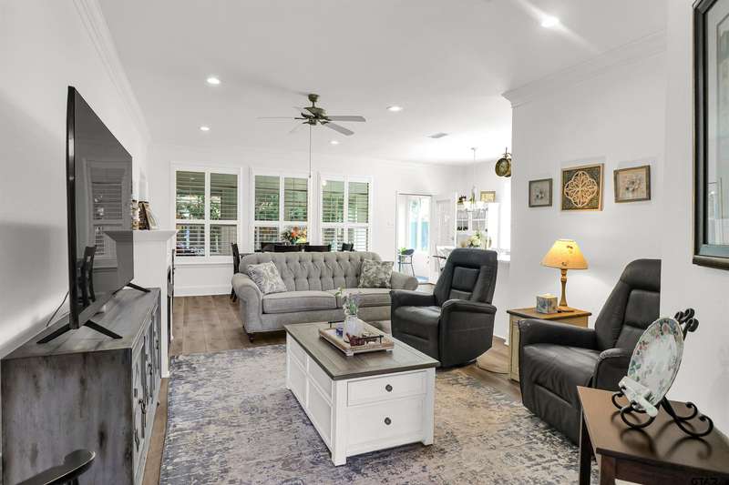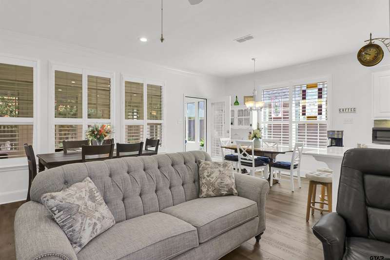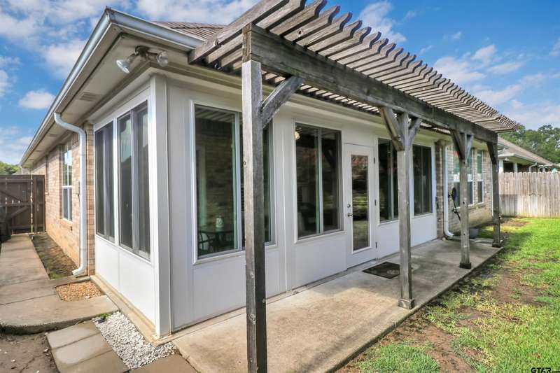 Goodness, this home is picture perfect. Southern Living, so inviting and warm. Bright and Light, 3 bed/2 baths, 2 car garage. 1647 sq ft plus Sunroom 8 x 22, 176 ft. Wonderful over 55+, gated community, located just off Grande Blvd. As you enter, you have two guest bedrooms and a guest bath. Spacious Family Room opening to an enclosed Sunroom. Many hours spent in the sunroom, looking out to a line of beautiful Crepe Myrtle's with a small covering off the Sunroom. Master and Master Bath separate from the Guest Rooms. Master Bath has a large shower, double sinks, walk in closet and a Linen Closet. Kitchen was updated in 2023 to include countertops, appliances and backsplash. Spacious pantry with the Utility Room leading to the garage. Plantation Shutters added throughout in 2023. They are just beautiful! The seller added the Sunroom in 2024. New Roof 2024. On top of everything else, you have a Fishing Lake, Community Pool, Clubhouse, and Exercise Bldg. Gated and secure. You need to see this Happy Home! Make it Yours!