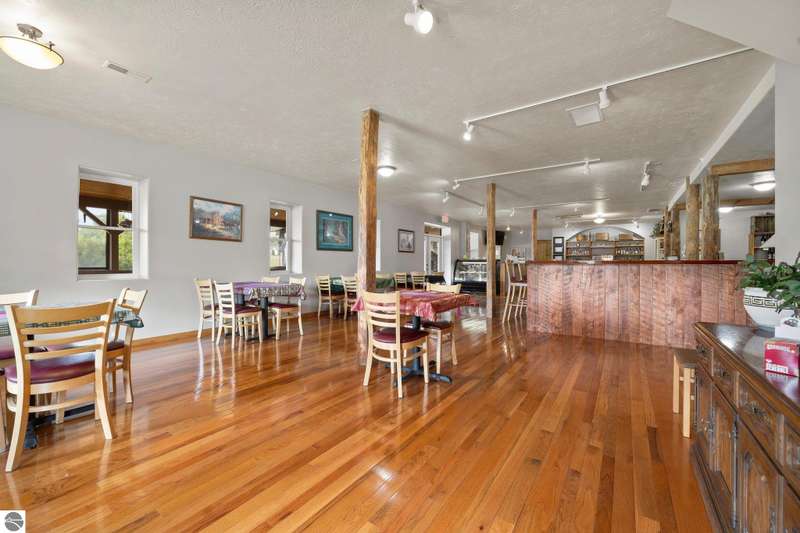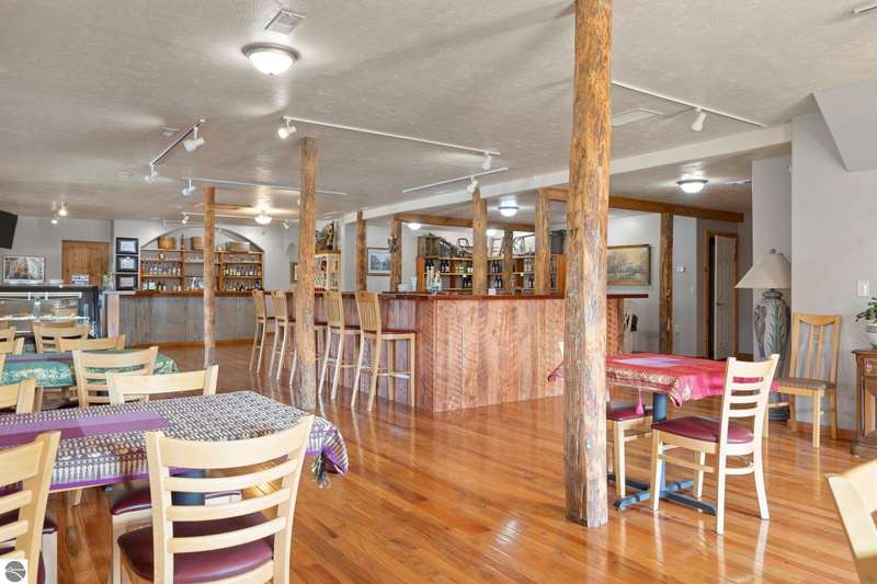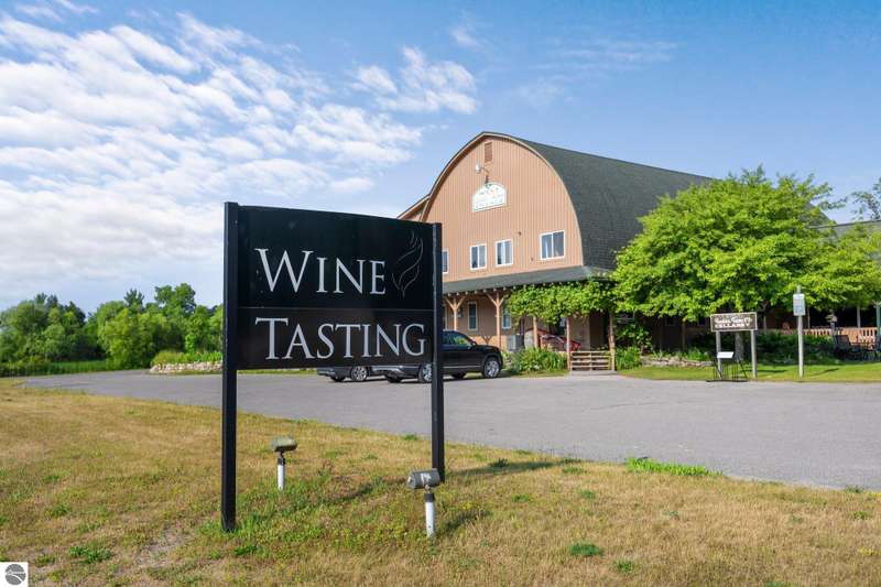 One of a kind fully-leased commercial and residential building with a beautifully built restaurant, multiple wine tasting rooms, retail and office spaces, and four successful airbnb rentals totaling over 18,000 square feet! With a full bar and (class C) liquor license, commercial kitchen, food and beverage store/market, indoor and outdoor seating for up to 300, and space for on-site brewery and event barn, the potential in this property is huge. No additional licensing is needed for a full brewpub operation with beer and wine takeout! Set on 4.3 acres with lengthy frontage on highly-traveled M-22, this building is just across the street from West Grand Traverse Bay including a popular public waterfront park and boat launch! There are beautiful bay views from many spots on the property, on the covered, 3-season, 1700+ square foot wrap around porch and in the building. The existing building is beautifully restored but also has value add potential, including a possible barn event space and two development parcels on the south side of the building - great possible brewery production building or additional residences. Ample parking, covered outdoor seating, and meticulous landscaping add to the phenomenal setting. Seller financing is a possibility - this property and opportunity are like no other in the Traverse City region!