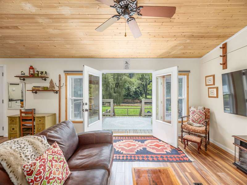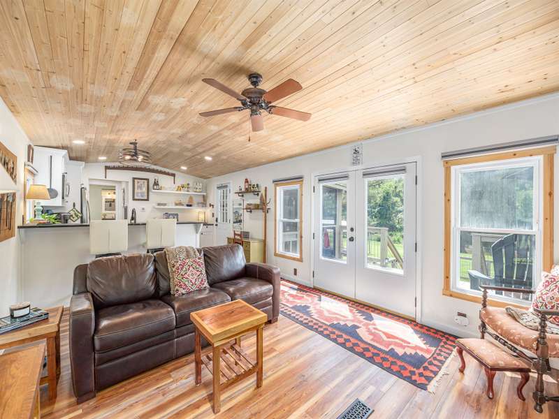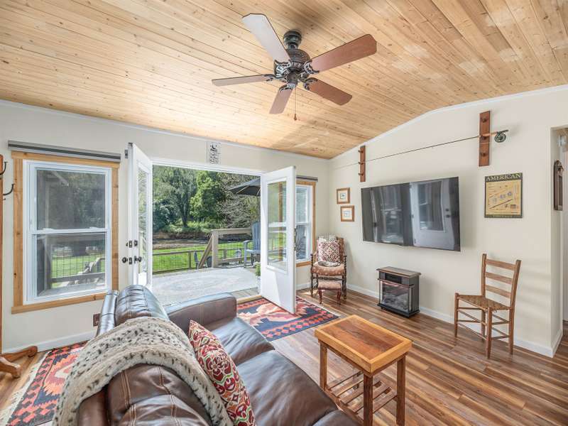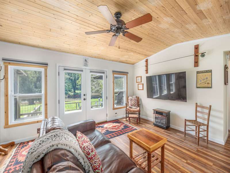 Discover a truly special riverfront getaway on the Pigeon River in Canton! This unique, extensively renovated home is a proven vacation rental success. Inside, you'll find custom cabinets, granite countertops, stainless steel appliances, and a spacious split-bedroom layout with a luxurious primary suite. French doors lead from the living room to a serene back deck with river views, a hot tub, and a screened-in lounge complete with bar and TV?perfect for relaxing or entertaining. The fenced backyard opens to your own stretch of riverfront, ideal for swimming or fly fishing for native trout. Whether you're looking for a private retreat or a furnished turnkey investment, this home offers the best of riverside living.