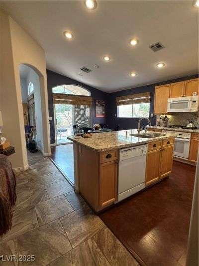 Welcome to your dream home! This stunning residence features 3 spacious bedrooms and 3 bathrooms, perfect for comfortable living. Enjoy the added versatility of a private den, ideal for a home office or cozy retreat. With a rare 3-car garage, you'll have plenty of space for vehicles and storage. Energy-efficient with a Power Purchase Agreement solar system, this home helps reduce utility costs while supporting sustainable living. Located in a highly sought-after school zone, it offers excellent educational opportunities. Situated just minutes from the world-famous Las Vegas Strip, there is easy access to top sports venues, entertainment, dining, and shopping options. Plus, the nearby Green Valley Ranch Casino adds an extra layer of excitement and convenience. Don't miss this incredible opportunity to own a beautiful home in one of Henderson's most desirable gated communities! ***Seller, in conjunction with Preferred lender will offer 1.5% toward RATE BUY DOWN. Ask for details!***