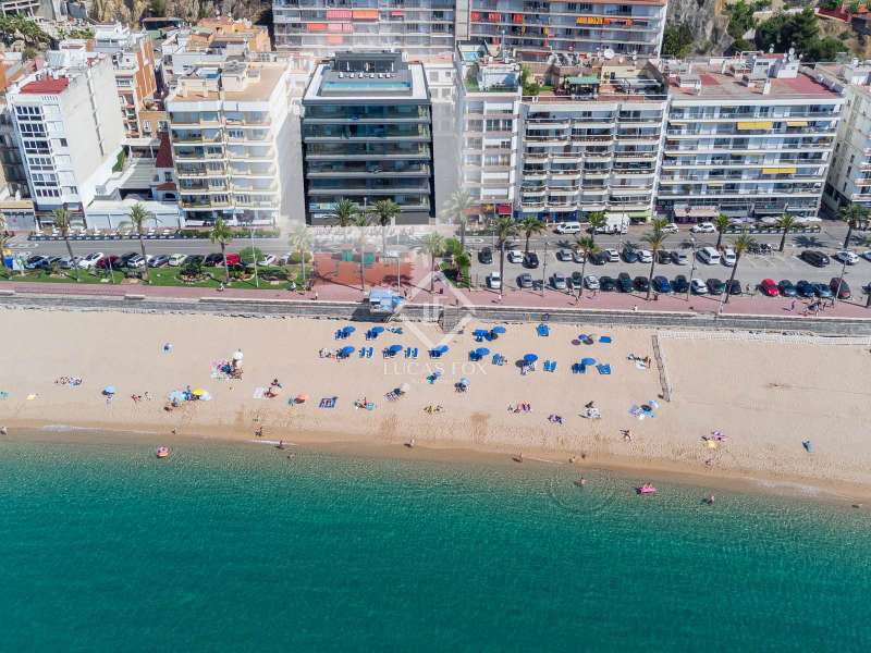 This exceptional new development enjoys a spectacular location on the seafront in Lloret de Mar, surrounded by shops, bars, cafes and restaurants, and a few minutes' walk from all services. This high-end apartment is located on the sixth floor and offers ecological features and avant-garde equipment. All units enjoy front or side sea views and feature large glass balconies and large windows to maximize natural light and take full advantage of the magnificent views of the Mediterranean. The property, designed by the famous architecture studio GCA, has an open-plan living room-kitchen with high quality materials and finishes. It measures 114 m² and has three bedrooms and two bathrooms. Residents will find underground parking in the building as well as a communal terrace with a solarium and an impressive infinity pool with panoramic sea views. Contact us for more information on this exceptional brand new apartment on the seafront on the Costa Brava.