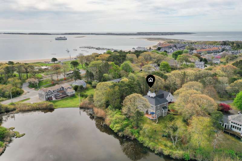 Rare offering of this Contemporary Colonial on Snows Creek.This 5 bedroom 5.5 bath 3900+ waterfront home is situated on a quiet private lane.The gracious entry way leads you into the sun filled living room, surrounded by beautiful pond views.The first floor primary suite features water views from every window, large walk in closet, walk-in tiled shower, double vanity and large soaking tub.The spacious chefs' kitchen features double Thermador wall ovens, new SubZero refrigerator, a bar area,beverage fridge, and a walk-in pantry. The kitchen leads to the family room with a gas fireplace and a wall of built-ins.The second floor features four large bedrooms and two full baths.Extra living spaces include a finished room over the oversized two car garage and the lower level features two finished rooms and a bath.Upgrades include a new roof and widows walk, irrigation system, Kohler generator. Feels like a private retreat but minutes from beaches, yacht club and ferries to MV and Nantucket.