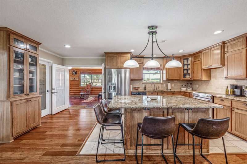 Welcome to your country retreat in one of the areas most desirable locations! Nestled on nearly 2 acres, this beautiful brick home offers a perfect mix of charm, comfort, and functionality. With 3 spacious bedrooms, 2 bathrooms, a dedicated office, and a unique cabin style sunroom, theres room for everyone to live, work, and relax. Inside this home features over 2500 square feet of living space. The open living area centers around a cozy fireplace, creating a warm and inviting atmosphere. The kitchen is a standout with a large island, custom wood cabinetry, granite countertops, and a walk-in pantryideal for cooking and gathering. The log-accented sunroom adds rustic character and serves as a bright, relaxing space to enjoy year-round. Outdoors, youll find everything you need for country living. A workshop with electric, RV storage with hookups, additional storage buildings, and a well for outside watering make this property practical as well as beautiful. The fenced yard is ready for play or animals, and covered parking ensures convenience.With scenic surroundings and a highly sought-after location, this brick home with its one-of-a-kind sunroom is truly a must-see!