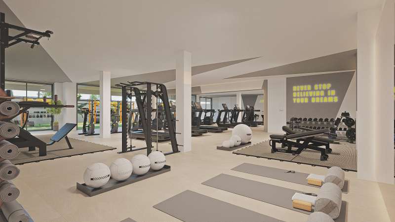 The complex offers communal spaces designed for enjoying every moment. A large outdoor swimming pool surrounded by landscaped gardens invites you to relax under the sun, while the indoor pool, spa, and sauna create a perfect setting for year-round wellbeing. For those who seek activity, there is a fully equipped gym, a coworking area, and safe spaces for children, all conceived to provide a balanced lifestyle.