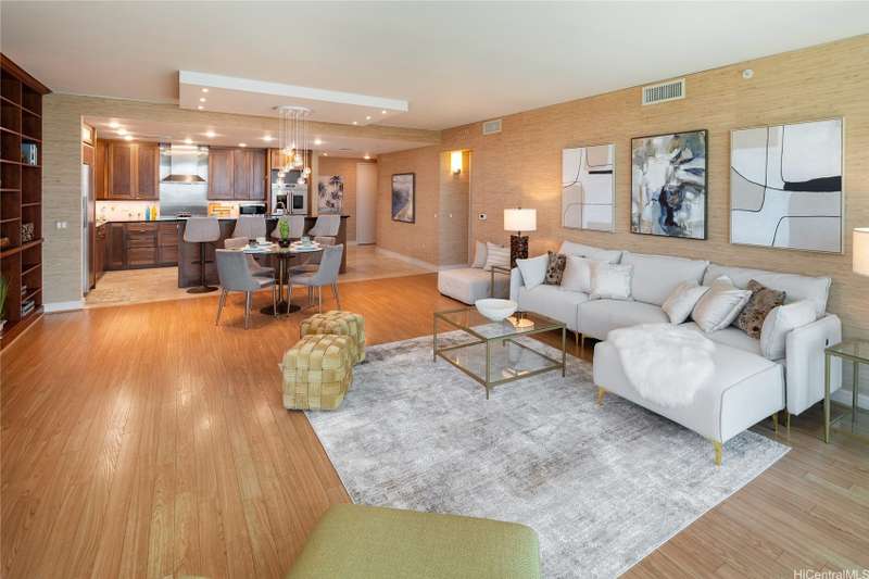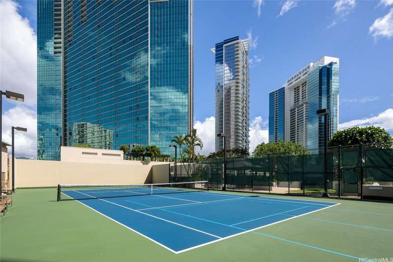 The Hokua at 1288 Ala Moana is one of Honolulu's finest luxury residences. Experience stunning, unobstructed ocean and coastline views from this tastefully upgraded end unit with 3 parking stalls. This spacious, light and bright "B" unit offers high floor-to-ceiling windows, a nicely upgraded kitchen leading to an open living area with delightful design elements such as grass cloth wallpaper, art lighting, electric blinds and built-ins. The large primary bedroom has a generous walk-in closet plus a luxurious bathroom suite with a custom walk-in shower and vanities. The unit boasts three parking spaces (a single stall and 2 tandem stalls) and storage locker all on parking level 2, located near the elevators. The amenities at Hokua are second to none, featuring resort-style indoor and outdoor amenities, including a fitness center, heated swimming pool, BBQ areas, tennis court/pickleball courts, dog park, playground, guest suites, 24/7 security, and so much more. All conveniently located just one block away from Ala Moana Shopping Center, Ward Villages, restaurants, theaters, shops, the boat harbor and directly across from the world-famous Ala Moana Beach Park.