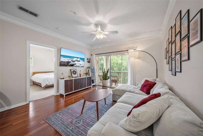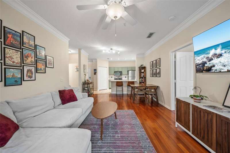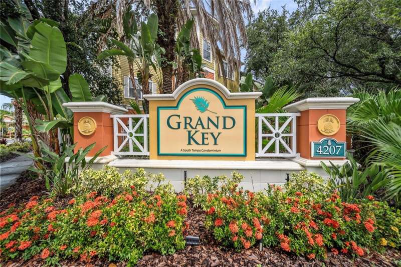 Under contract-accepting backup offers. Motivated Sellers-- Come tour this beautiful property and make us an offer! This stunning top-floor corner unit is in immaculate condition and packed with upgrades, just steps from a resort-style pool. A rare opportunity for a unit that comes with TWO reserved parking spaces just outside the unit. Featuring beautiful hardwood floors… The gourmet kitchen boasts energy-efficient stainless-steel appliances, freshly painted trendy cabinets, new quartz countertops, a new backsplash, a new dishwasher (2024), and a huge pantry, all complemented by a full-sized washer and dryer in the laundry room. Both bathrooms have been updated with new tile flooring and chair height toilets. Bathroom two has an updated quartz counter with a new sink and modern faucets. The entire unit has been freshly painted. Additional upgrades include a new water heater(2023) and air handler(2023), making this home truly move-in ready. The desirable split-bedroom floor plan offers a large primary suite with an en-suite bath featuring a garden-style soaking tub, linen closet, and oversized walk-in closet, while the spacious second bedroom also has a walk-in closet and adjacent full bath. Located in the sought-after Grand Key community with low condo fees and no flooding during the 2024 hurricanes, this well-maintained home combines comfort, style, and convenience in one perfect package.