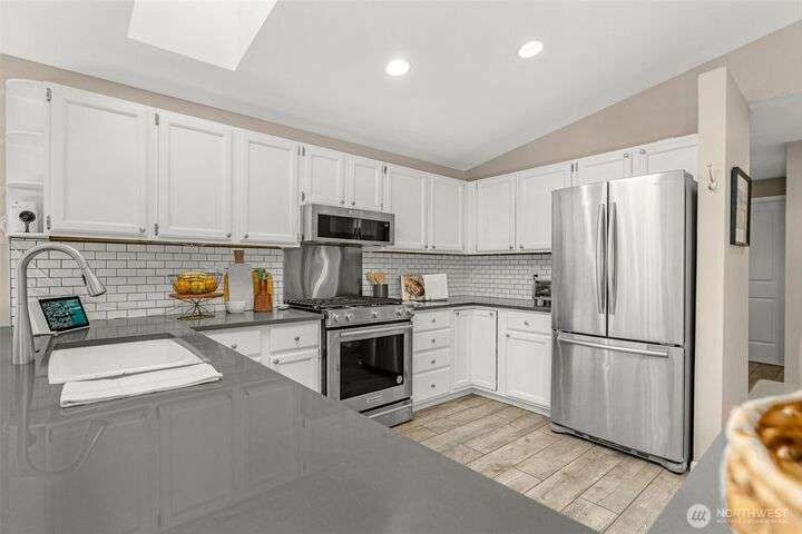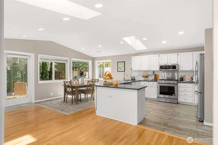 Pride of ownership shines in this beautifully updated Broadview rambler, designed w/ entertaining in mind. Vaulted ceilings, abundant windows, & skylights flood the remodeled kitchen & great rm w/ natural light - even on classic gray Seattle days. Luxury finishes include quartz ctops, subway tile, and gleaming hardwood floors. Step outside to your ultra-private backyard retreat or take in breathtaking sunsets from the front deck. Ample off-street parking and a brand-new sewer line from the street to the home. This home lives larger than its sq ft suggests, nestled on a quiet, dead-end street in a sought-after neighborhood. Just blocks from Carkeek Park and minutes to shops, dining, Hwy 99 & I-5. Peaceful living w/ unbeatable convenience.