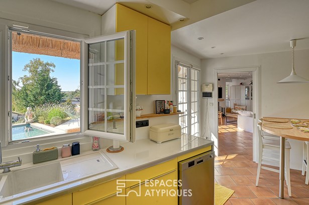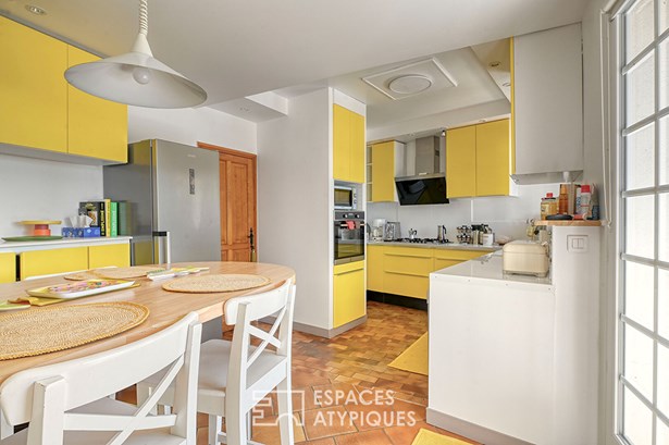 A pantry and a laundry room are located in the extension, as well as a bedroom, with the possibility of creating a bathroom, and a toilet, allowing you to imagine a complete studio on the ground floor.