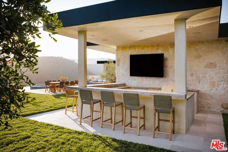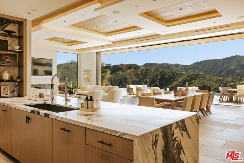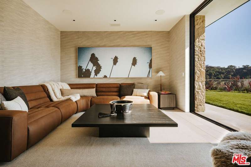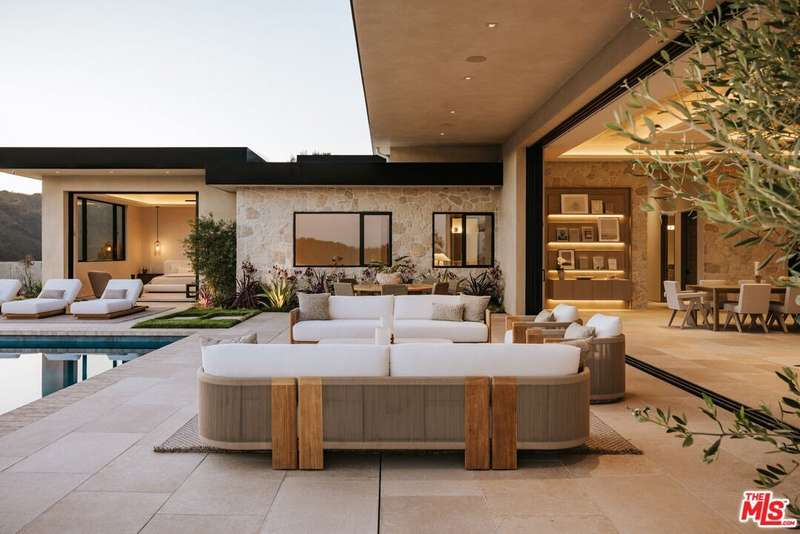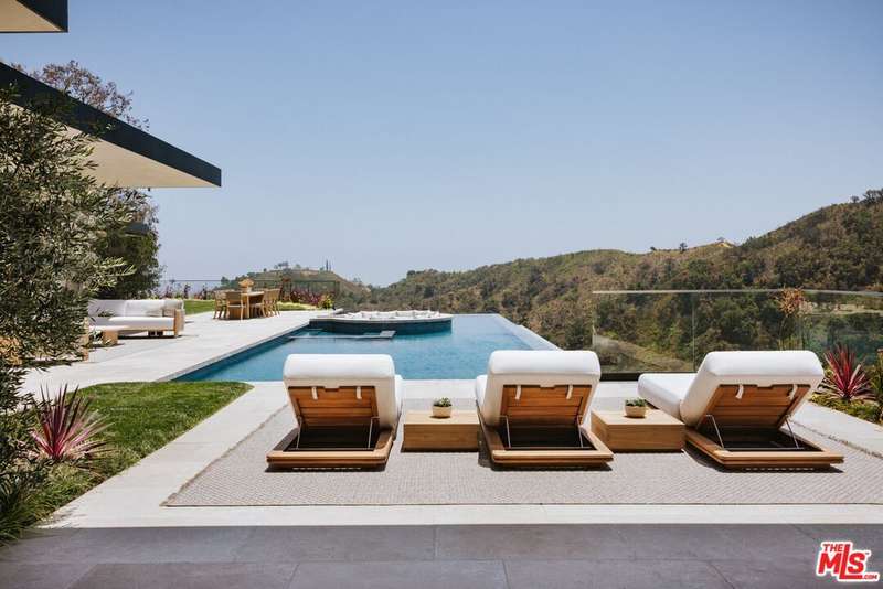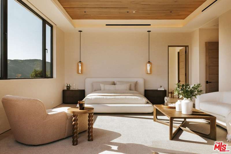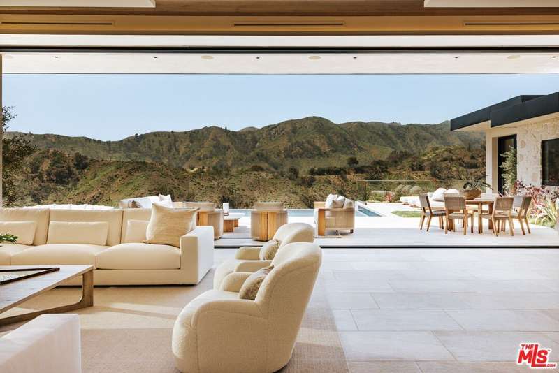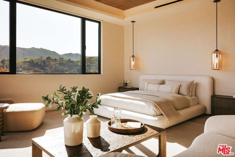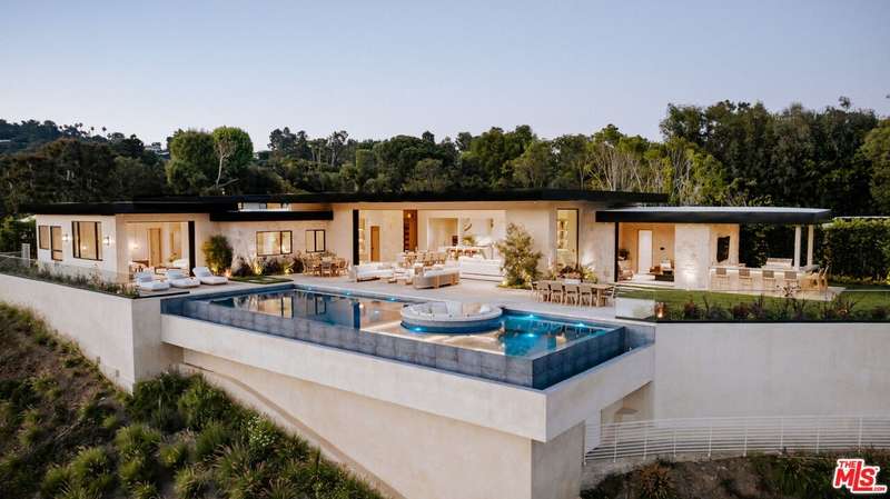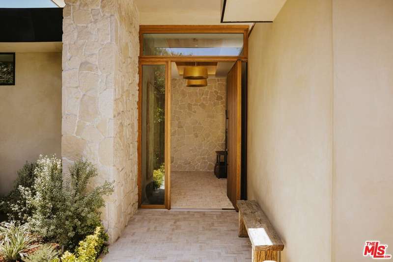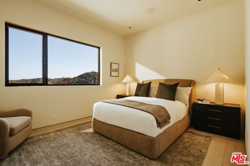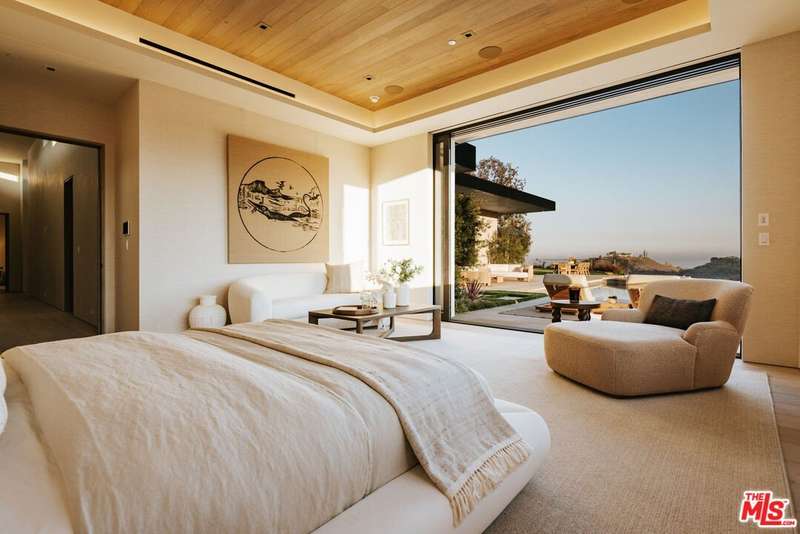 Positioned on a private promontory in one of Brentwood's most coveted enclaves, this rare single-level estate commands mesmerizing panoramic views and offers the epitome of Southern California living. Set over 200 feet from the street on more than an acre of gated, impeccably landscaped grounds, this organic architectural residence offers privacy, prestige, and effortless livability. Step inside to discover voluminous interiors crafted with exquisite custom finishes by renowned developer Ron Gonen. The space is elegantly complemented by a curated collection of bespoke furnishings from acclaimed interior designer Rachael Goddard. At the heart of the home, the great room is elegantly framed by expansive glass doors that set the gold standard for indoor-outdoor living. Soaring 13' ceilings, accented with designer details, crown this open-concept space, complete with a sleek built-in bar, flooding it with natural light and revealing breathtaking city, ocean, and canyon vistas. The gourmet kitchen showcases a striking waterfall island with custom bar seating, a built-in coffee bar, a spacious walk-in pantry, and a fully equipped secondary chef's kitchen with top-of-the-line integrated appliances. The elegant dining area seamlessly connects to the outdoors, offering a stunning setting for memorable meals and sophisticated soirees. Envisioned for an unparalleled living experience, the primary suite is a true sanctuary, where serene views, a glamorous walk-in closet, and a spa-inspired bath invite total relaxation with a steam shower, radiant heated floors, a built-in vanity, a bidet toilet, and elegantly integrated limestone and marble sinks. The four additional bedrooms, including one crafted as a home office, each feature en-suite baths and walk-in closets. This resort-style outdoor oasis is truly spectacular, featuring abundant living and alfresco dining areas, a built-in bar and kitchen with barbecue, sink, refrigerator, and outdoor TV, an infinity pool and spa with a sunken conversation fire pit, and lush gardens that frame sweeping canyon vistas, creating a private retreat ideal for both peaceful relaxation and effortless entertaining. Additional amenities include full Control4 home automation with automated sliding doors, an integrated speaker system in every room, 14 surveillance cameras for comprehensive security coverage, and electric window shades throughout. Every element of this one-of-a-kind estate has been meticulously curated to redefine luxury living. Set on Bayliss Road, one of the most exceptionally wide, serene streets free of visible power lines, it offers unmatched privacy and sweeping perspectives in a truly coveted location. One you won't want to miss. Property is sold fully furnished.
