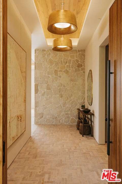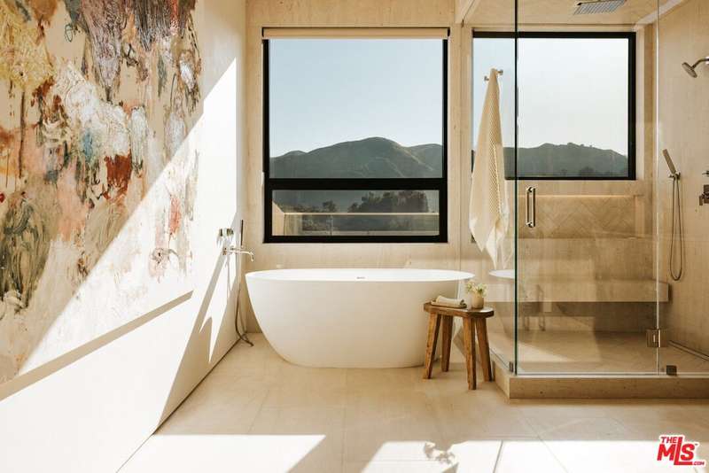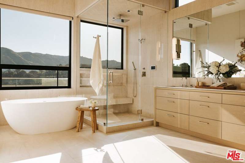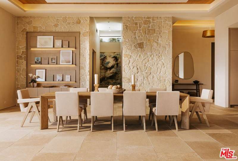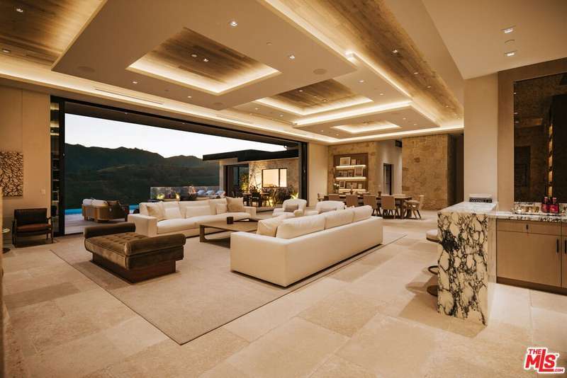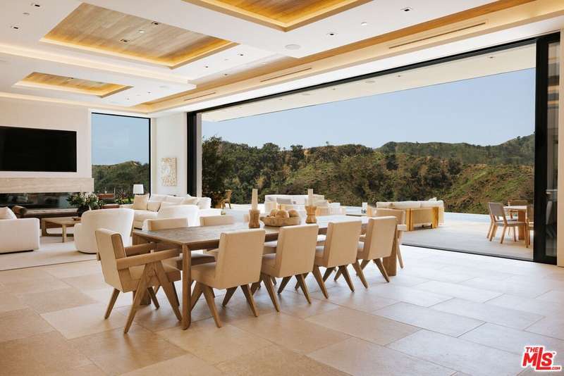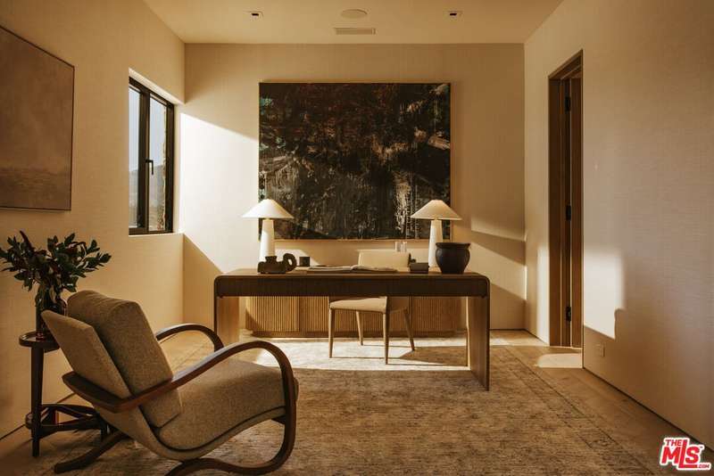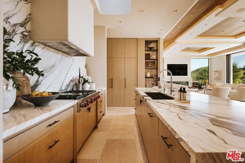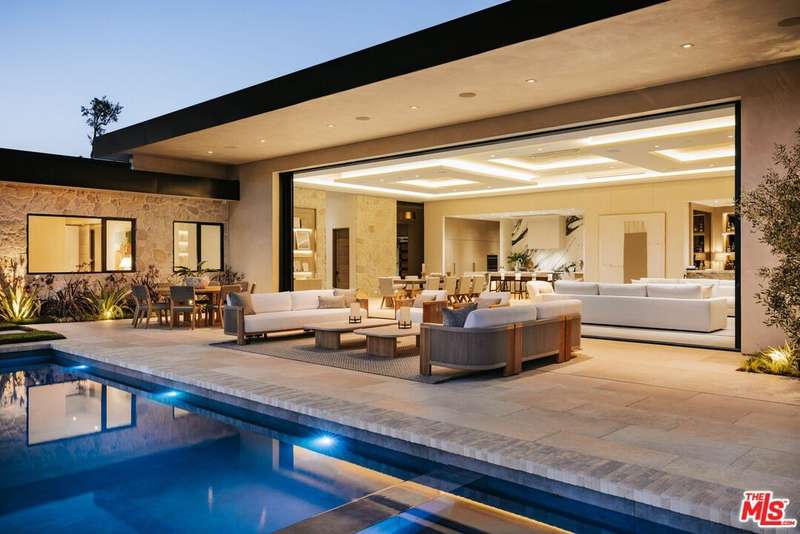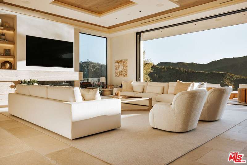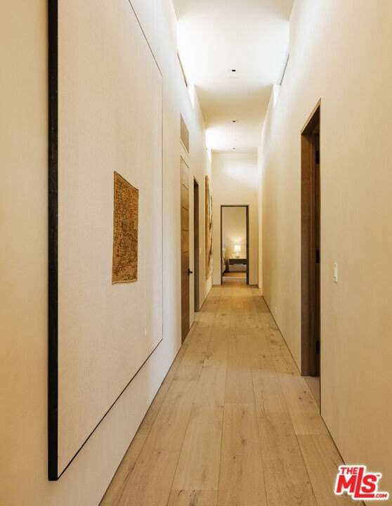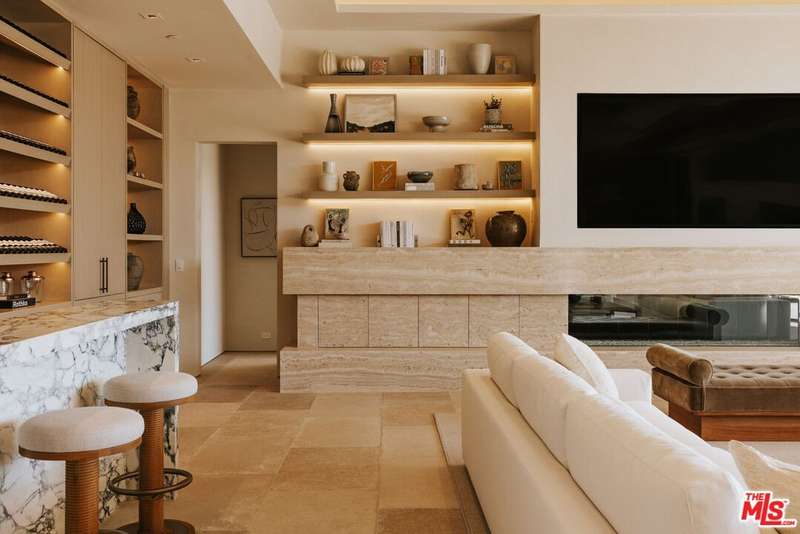 Positioned on a private promontory in one of Brentwood's most coveted enclaves, this rare single-level estate commands mesmerizing panoramic views and offers the epitome of Southern California living. Set over 200 feet from the street on more than an acre of gated, impeccably landscaped grounds, this organic architectural residence offers privacy, prestige, and effortless livability. Step inside to discover voluminous interiors crafted with exquisite custom finishes by renowned developer Ron Gonen. The space is elegantly complemented by a curated collection of bespoke furnishings from acclaimed interior designer Rachael Goddard. At the heart of the home, the great room is elegantly framed by expansive glass doors that set the gold standard for indoor-outdoor living. Soaring 13' ceilings, accented with designer details, crown this open-concept space, complete with a sleek built-in bar, flooding it with natural light and revealing breathtaking city, ocean, and canyon vistas. The gourmet kitchen showcases a striking waterfall island with custom bar seating, a built-in coffee bar, a spacious walk-in pantry, and a fully equipped secondary chef's kitchen with top-of-the-line integrated appliances. The elegant dining area seamlessly connects to the outdoors, offering a stunning setting for memorable meals and sophisticated soirees. Envisioned for an unparalleled living experience, the primary suite is a true sanctuary, where serene views, a glamorous walk-in closet, and a spa-inspired bath invite total relaxation with a steam shower, radiant heated floors, a built-in vanity, a bidet toilet, and elegantly integrated limestone and marble sinks. The four additional bedrooms, including one crafted as a home office, each feature en-suite baths and walk-in closets. This resort-style outdoor oasis is truly spectacular, featuring abundant living and alfresco dining areas, a built-in bar and kitchen with barbecue, sink, refrigerator, and outdoor TV, an infinity pool and spa with a sunken conversation fire pit, and lush gardens that frame sweeping canyon vistas, creating a private retreat ideal for both peaceful relaxation and effortless entertaining. Additional amenities include full Control4 home automation with automated sliding doors, an integrated speaker system in every room, 14 surveillance cameras for comprehensive security coverage, and electric window shades throughout. Every element of this one-of-a-kind estate has been meticulously curated to redefine luxury living. Set on Bayliss Road, one of the most exceptionally wide, serene streets free of visible power lines, it offers unmatched privacy and sweeping perspectives in a truly coveted location. One you won't want to miss. Property is sold fully furnished.
