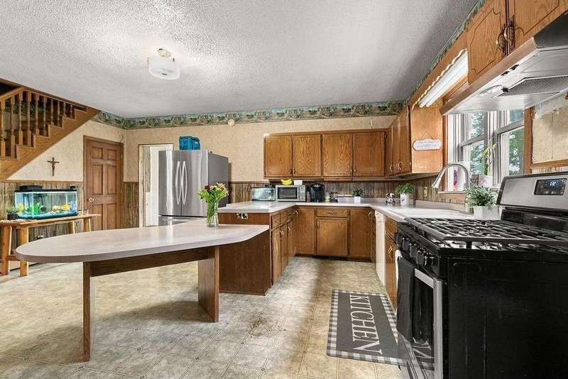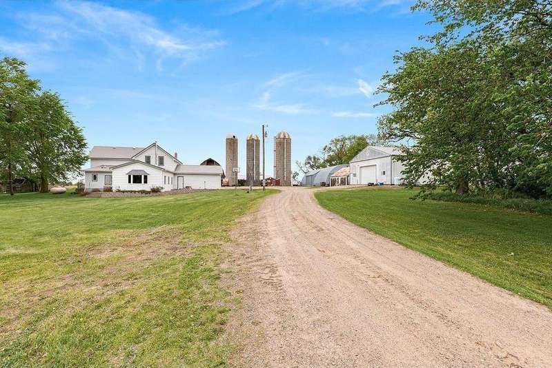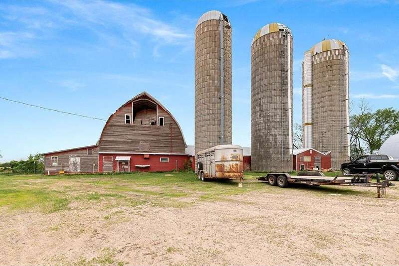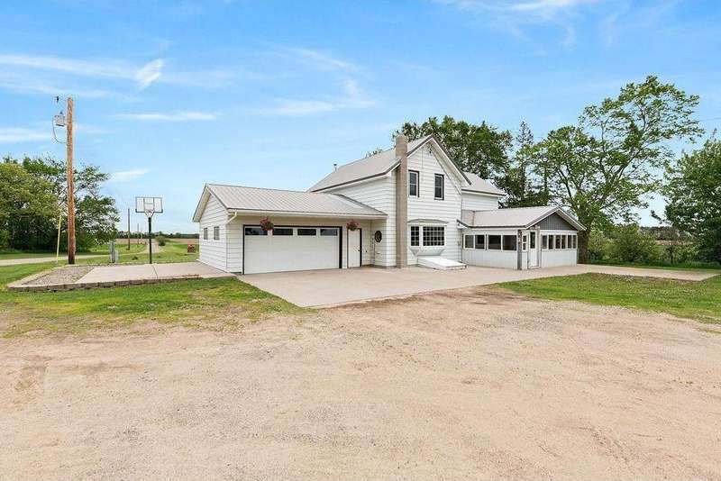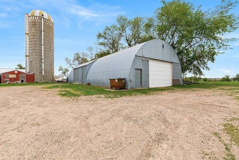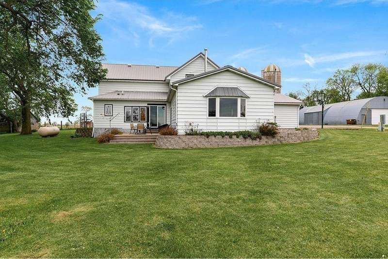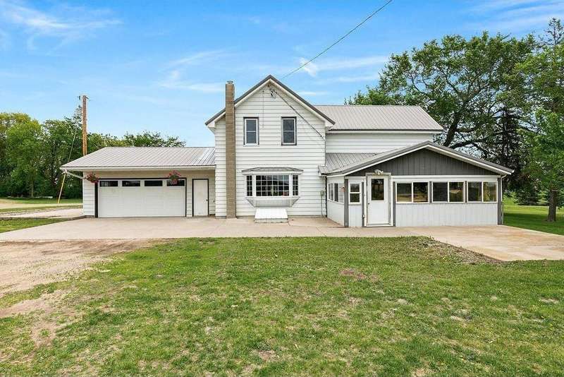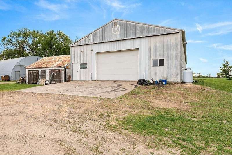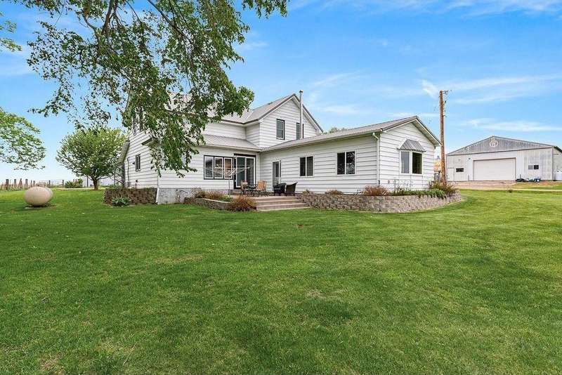 Perfect edge of town with great access location! Three bedroom two bath two story home. This picturesque farm home has had many updates to include; metal maintenance free siding, vinyl windows, with other numerous updates throughout. There is a massive kitchen, main floor laundry, open concept dining-living-family gathering area, with three bedrooms on one level. Attached garage, 40 x 100 shop partially finished & heated, 40 x 104 quonset with concrete & electric, and a 20 x 30 shed.
