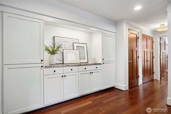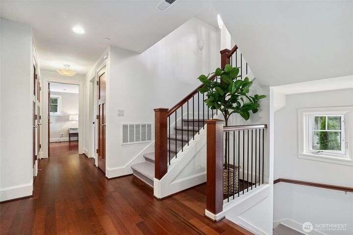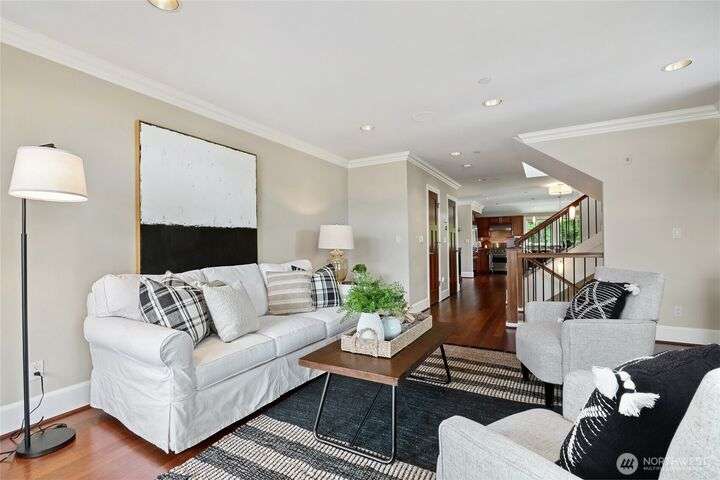 Discover waterfront living at its best! Imagine evenings dining lakeside, relaxing on your deck, or storing your SUP with ease—all you desire for a waterfront lifestyle. Most rooms have city and lake vistas, while the rare rooftop deck offers wide angle mtn views from snowy Mt. Baker to iconic Rainier, with Dwntn Bellevue in between! Inside, rich warm wood accents enhance the upscale, comfy feel. Bonus...enjoy the security of two enclosed garages! Don't miss the office at the top of the stairs - office w/a view! This home is comfortable and low maintenance. Just 3-blocks to vibrant Leschi, teeming with its charming market, chic restaurants, and parks. This exceptional townhome combines everything you love—location, luxury, and urban style.