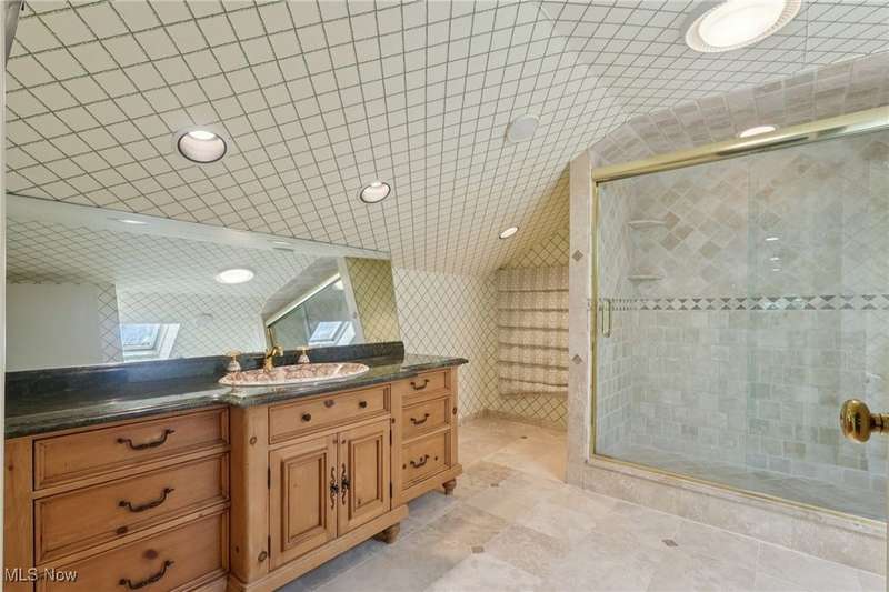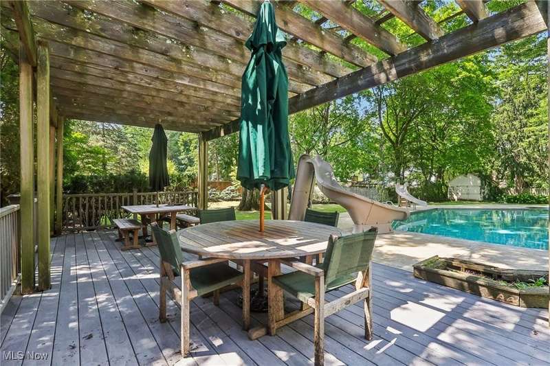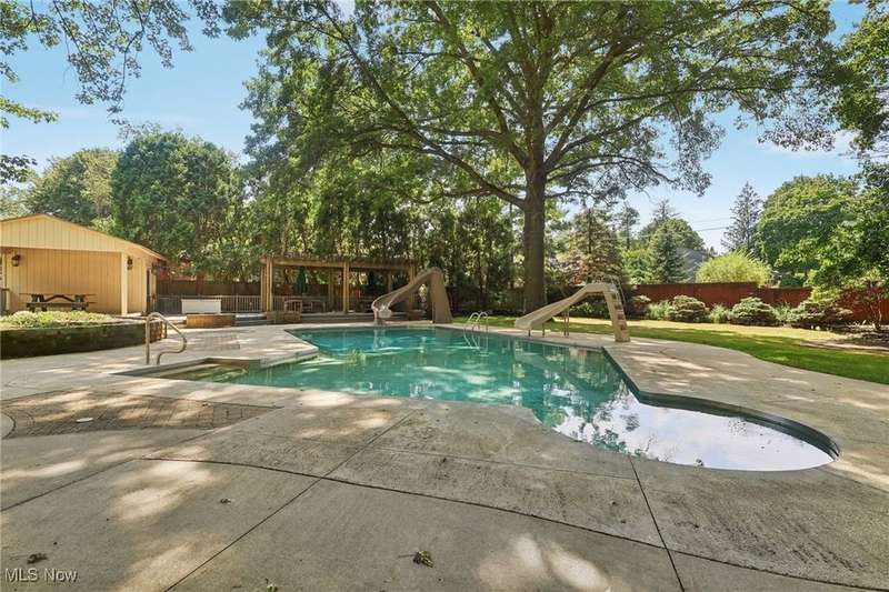 Stately brick Cape Cod nestled in one of Akron's most desirable neighborhoods. This 4 bed, 3.5 bath home offers over 4290 sq.ft. of living space blending quality craftsmanship with charm. Impressive chef's kitchen outfitted with Gaggenau appliances, Traulsen commercial refrigerator/freezer ensures performance & style. Custom backsplash adds a distinctive design while the cabinetry is crafted with purposeful details for exceptional functionality. Center island provides prep space with cabinets for storage. Charming dining room flows off kitchen where fireplace serves as a focal point while hardwood floors, paneling & stately ceiling beams add architectural interest. French doors provide separation from office with built-in shelving for working from home or a quiet retreat. Expansive living room is anchored by a fireplace & flanked by built-ins. Windows with plantation shutters fill the room with natural light & great views. First floor primary bedroom offers ample closet space, en suite bath with walk-in shower & bathtub for comfort & convenience. Vaulted ceiling with wood beams & brick wall enhance the rooms character. Two add'l generously sized bedrooms share full bath. Second level offers oversized bedroom that boasts a second room & full bath with flexibility to serve as guest suite, media room, or playroom. Finished lower level with rec room exudes warmth with wood paneling & a bar styled as an English pub. Bathroom & laundry finish the lower level. Step outside to your private oasis. Beautiful in-ground pool surrounded by mature trees & manicured landscaping create a serene setting for entertaining or relaxation. Covered deck & patio enhanced by wood burning oven create space for outdoor dining & entertaining. Green space around pool provides room for outdoor activities & a shed for storage. Detailed landscaping & mature flowerbeds provide exceptional curb appeal. Estate also has a condo for sale in Naples area. Buyer has option of purchasing both as a package
