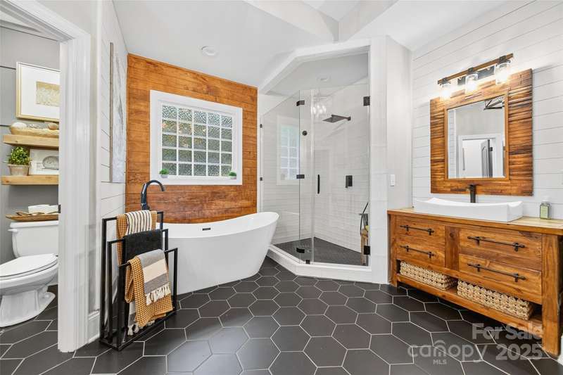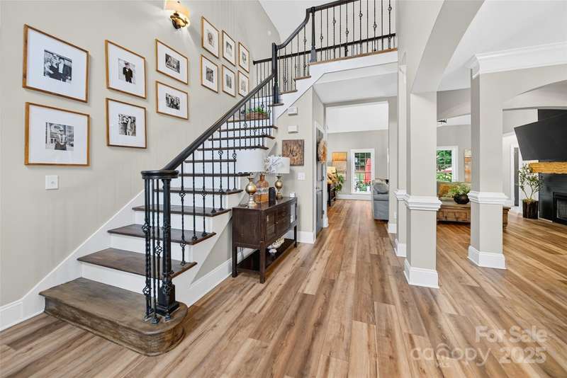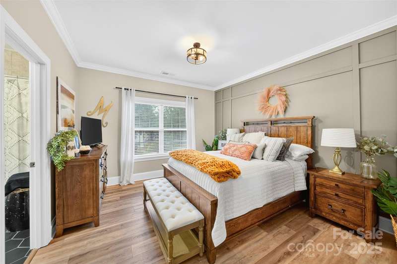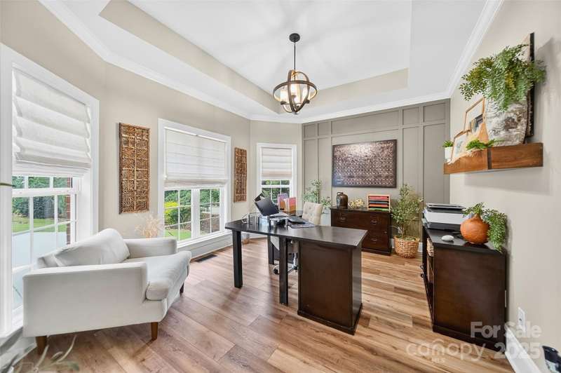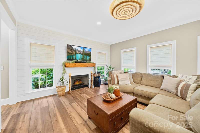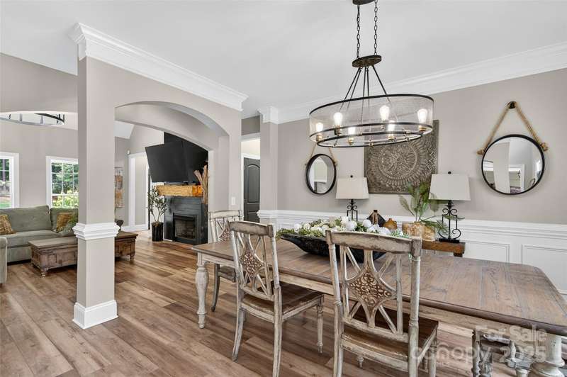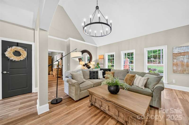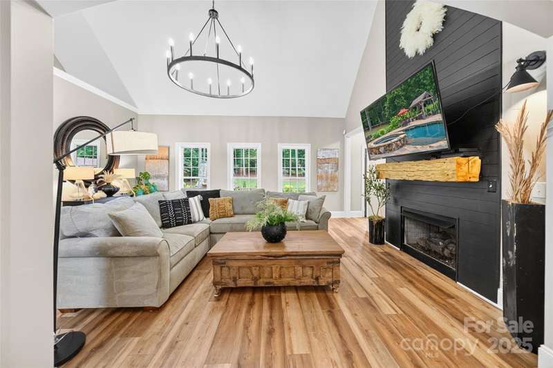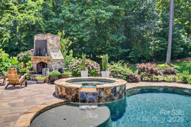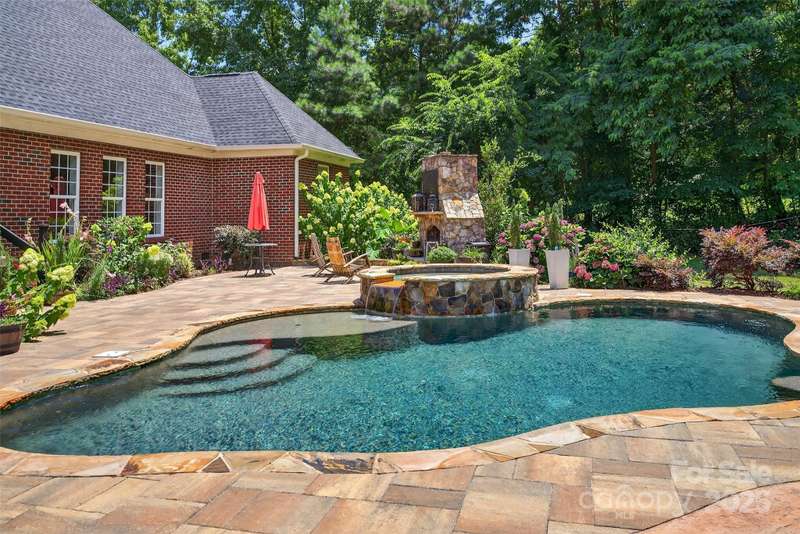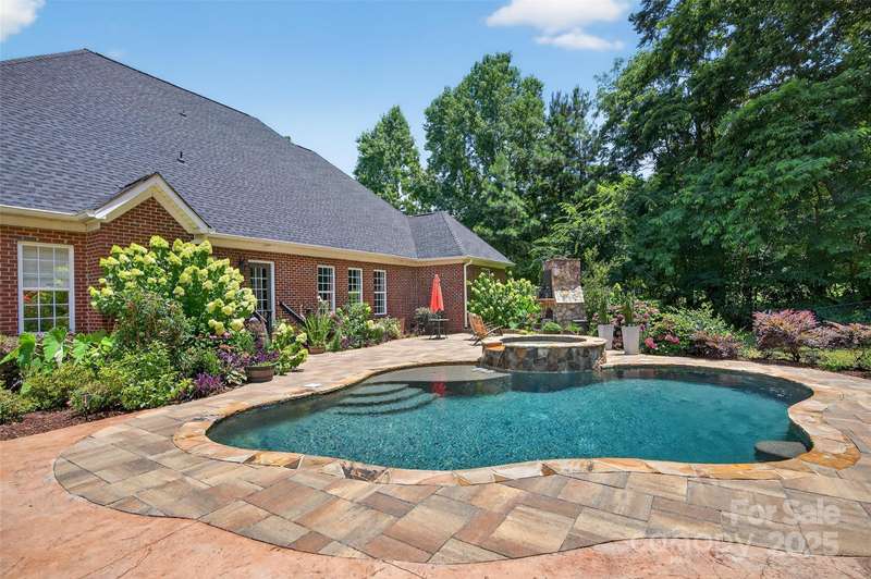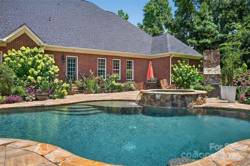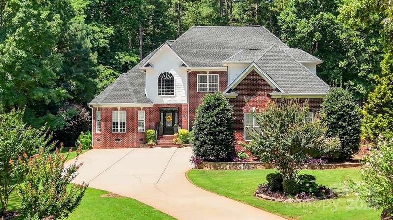 Welcome Home! This exceptional 4-bedroom, 3.5-bath custom home is nestled on a lush, wooded lot with tranquil waterviews. The spacious main-level primary suite provides convenience and serenity, while the upgraded bathrooms and kitchen reflect quality craftsmanship and attention to detail. Gorgeous board and batten finishes add character throughout while the gas log fireplaces create a warm, inviting atmosphere. Step outside to your private backyard oasis-complete with a saltwater gunite pool, spa, fireplace and mature landscaping for year-round beauty and seclusion. A generous 3-car garage provides ample storage and functionality. Located in a private neighborhood known for its large lots and beautiful custom homes, this property offers the rare combination of peaceful surroundings with walking trail, and upscale living. Conveniently located near The Villages of Sherrills Ford for your shopping needs, schools, and public boat storage nearby. New roof 2023! A one-of-a-kind retreat!