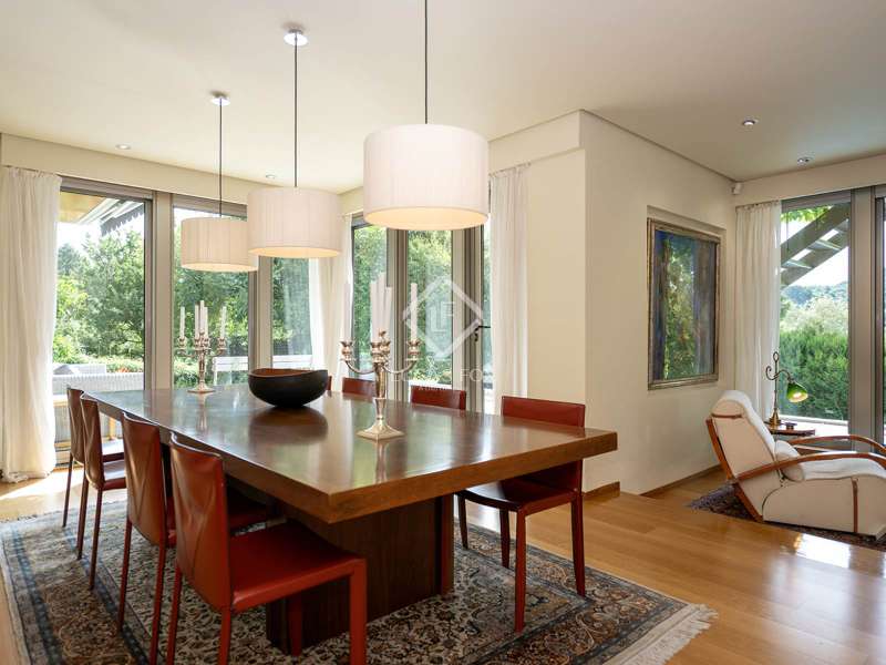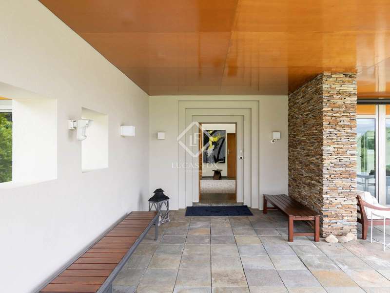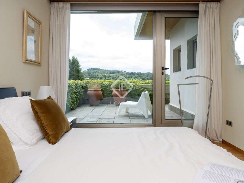 Renowned for its striking waterfall design by the late architect Frank Lloyd Wright, this elegant property serves as a sanctuary for those who appreciate privacy and beauty. The current owners have meticulously completed the design, echoing Wright's signature style. As we approach, a winding driveway leads to a spacious welcome porch that opens into a grand entrance hall with soaring ceilings and an elegant staircase. To the right, a lovely seating area features large folding doors that flow seamlessly to the outdoor terrace. The sleek kitchen, on the left, includes a generous breakfast bar, a central island, and high-quality appliances set against luxurious marble flooring. This level features natural wood flooring and a spacious dining room, perfect for entertaining. On the first floor, find three double-sized en-suite bedrooms, including a main bedroom with a walk-in wardrobe and stunning garden views. Access to beautifully finished terraces enhances this living space. The basement offers practical amenities, including parking for three vehicles, storage, and a comfortable living quarter for in-house staff. Outside, the gardens offer a tranquil oasis, featuring mature trees and vibrant plants, connected by cobblestone paths. The swimming pool deck features elegant teak finishes, ideal for relaxation. The villa is being sold with furniture, decorations, and appliances. Specific items of personal value are not included in the sale but can be negotiated if necessary as part of the purchase. This property is a perfect retreat for those seeking tranquillity and privacy, conveniently located near amenities, charming medieval villages, and a small city. Please contact us for further information.