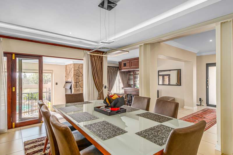 EXCLUSIVE MANDATE!! Sophisticated 5-Bedroom, 4.5-Bathroom Residence in Carlswald North Estate, Midrand Discover this stunning home nestled in the esteemed Carlswald North Estate, where luxury finishes meet modern living in expansive spaces, ready to embrace its new family. **Ground Floor Highlights:** - Double automated garage with direct access to the home - Ample open parking available - Staff accommodation complete with a bathroom - Functional scullery featuring abundant cupboard space and room for two appliances - Semi open-plan kitchen equipped with Caesarstone countertops, a gas stove, and a breakfast nook, seamlessly flowing into a grand family lounge - Family lounge opens up to a spacious patio with a built-in braai, leading to a sparkling swimming pool and beautifully landscaped garden - Built-in bar area in the lounge, perfect for entertaining guests - Separate dining room adjacent to the lounge, which opens onto a second patio that leads to a large garden - Versatile home office/study that can also serve as a fifth bedroom - Air conditioning throughout the lounge, all bedrooms, and bar area - Convenient guest toilet **First Floor Features:** - Luxurious master suite complete with an opulent en-suite bathroom, dressing area, walk-in wardrobe, and balcony - Home office/study with a balcony overlooking the entrance and tranquil surroundings - Four spacious bedrooms, all featuring generous built-in cupboards and serviced by two full bathrooms - Large shared bathroom with elegant finishes **Estate Lifestyle Amenities:** Living in Carlswald North Estate affords exclusive access to: - 24-hour security and access control - Fully equipped gym - Clubhouse and communal swimming pool - Squash and tennis courts - Nature trails, parks, and green spaces - On-site convenience store **Prime Location:** Ideally situated near top schools and shopping centres, with quick access to major highways—just ±4.5 km from the Mall of Africa. Don’t miss the chance to call this exquisite residence your home. Contact us today to schedule a private viewing!