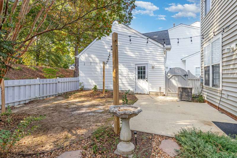This move-in-ready townhouse is freshly painted throughout and features crown molding in the formal areas with an open flow from the foyer into the light-filled family room. Enjoy a cozy gas-log fireplace and direct access to a private, fenced backyard with patio?perfect for relaxing or entertaining. The kitchen offers granite countertops and a breakfast nook, while a convenient laundry closet is located on the main level.Upstairs, the spacious primary retreat showcases a tray ceiling, spa-like bath with dual vanity, private water closet, and a large walk-in closet. Two additional bedrooms, each with generous closet space, share a full bathroom.Additional highlights include a detached one-car garage with shelving and overhead storage. Community amenities feature a pool, sports courts, and direct access to the Beaver Creek Greenway for walking and biking. Ideally located just minutes from Beaver Creek Shopping Center with plenty of dining, shopping & entertainment options, and a short drive to historic Downtown Apex, Lake Pine Plaza with Costco, and RDU Airport, this home offers comfort, convenience, and the very best of ''The Peak of Good Living.''