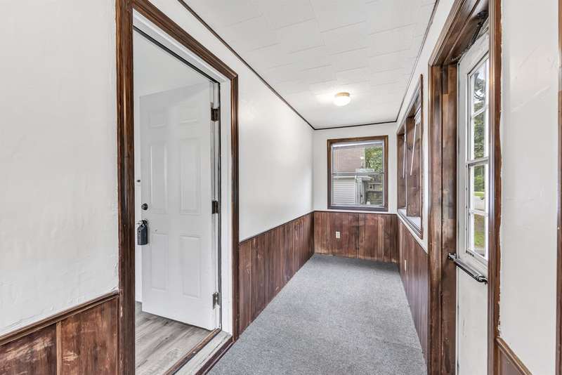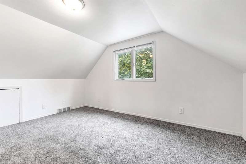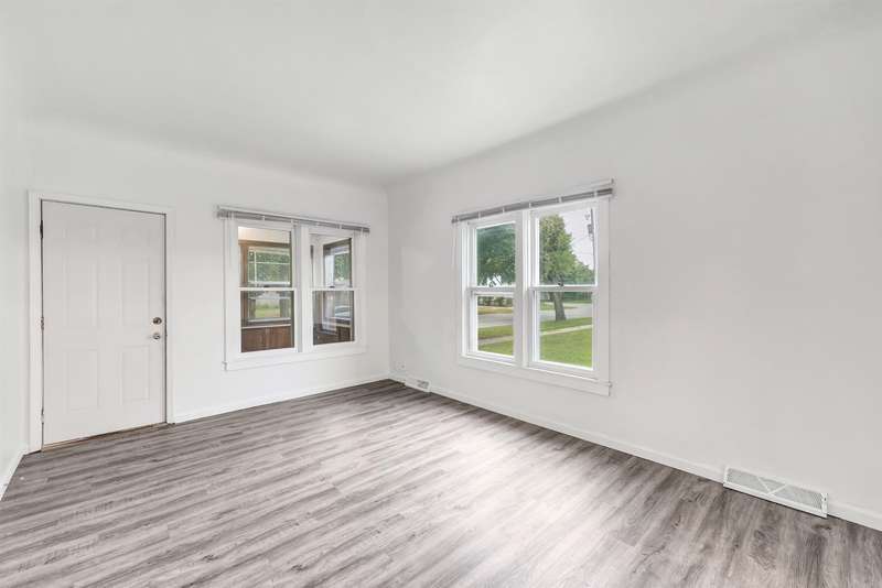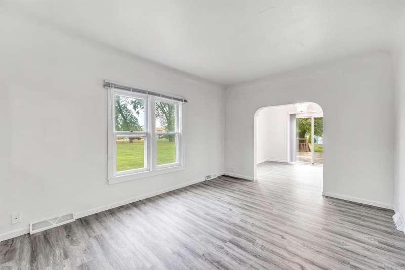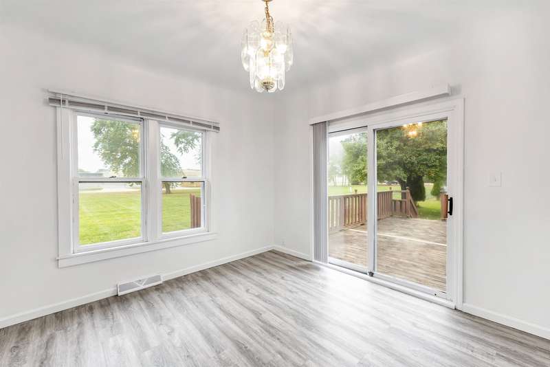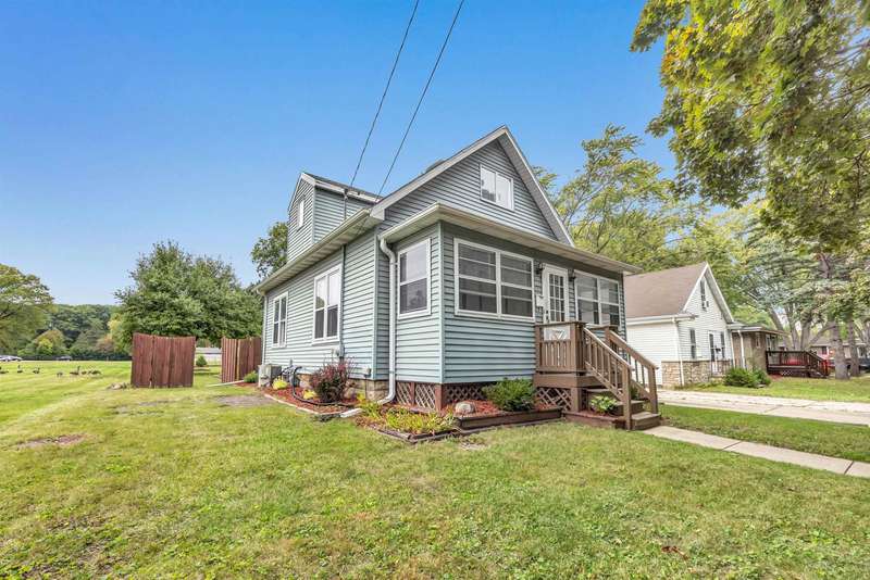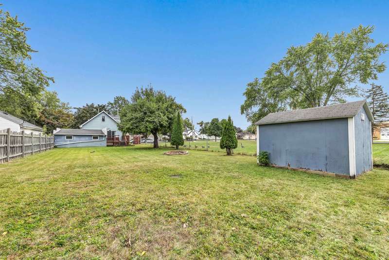 Cozy 3 bedroom, 2 bathroom 1.5-story home with attached 1-stall garage. This home features a main-floor primary bedroom, enclosed front porch, back deck, fenced yard, and shed. Interior includes new wood LVT flooring on main level, fresh paint, and carpet in upper bedrooms. Tiled kitchen with white cabinets and includes one-year-old refrigerator, range, and microwave. Lower level has a rec room, full bath (concrete floors), and laundry. Schedule your showing today!