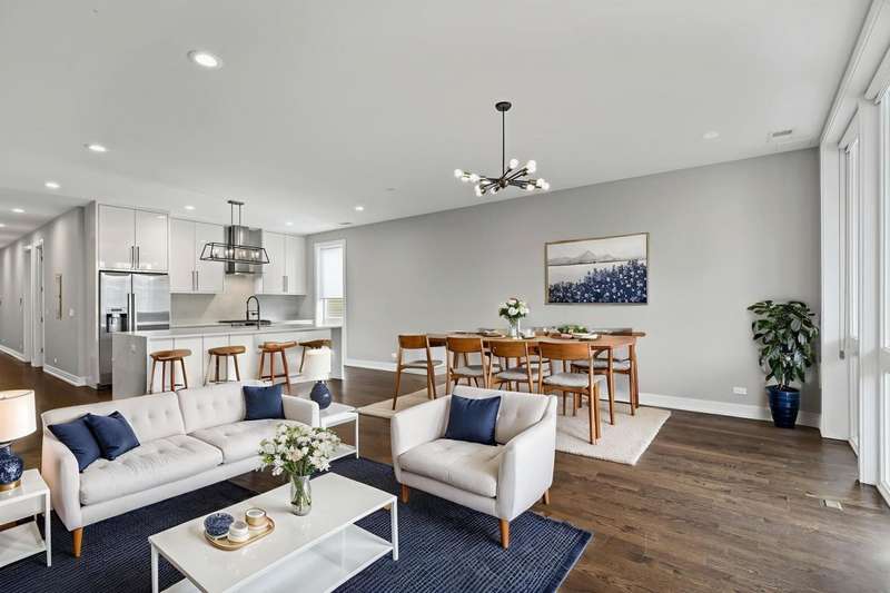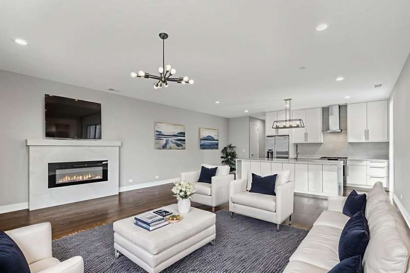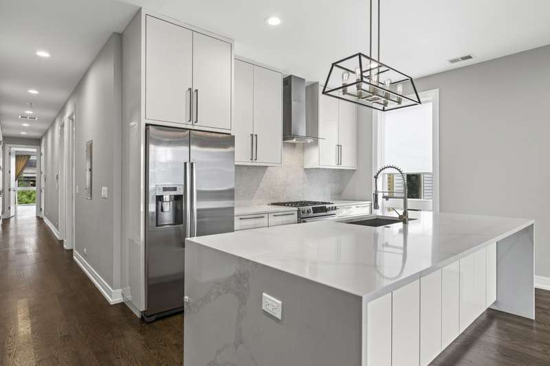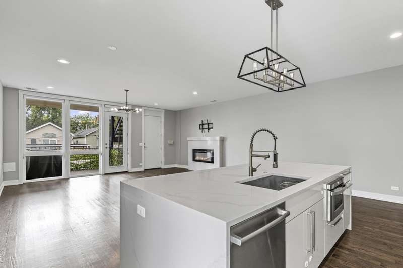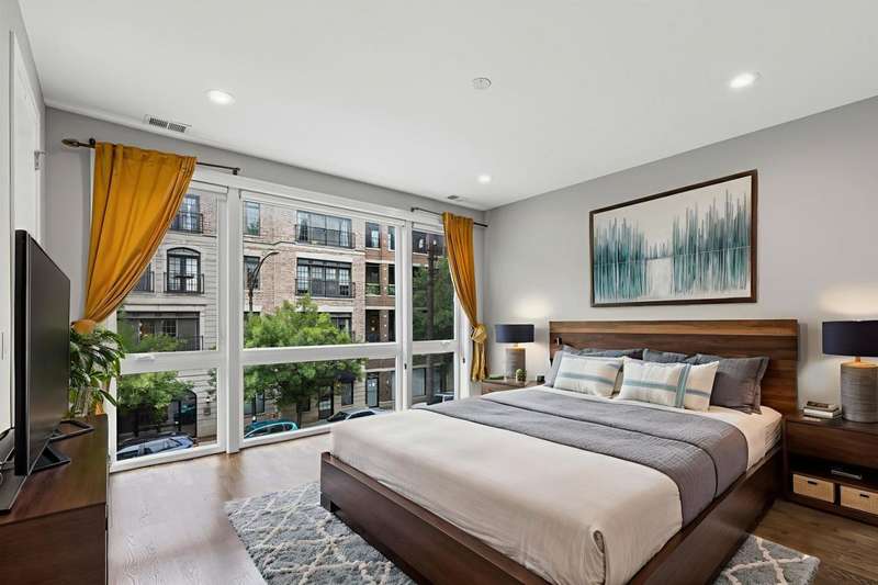 Available November 1, 2025 (October 15th is also possible), this spacious 3-bedroom, 2-bath luxury condo offers the perfect blend of style and comfort. Built in 2018, the open-concept layout flows seamlessly to a south-facing private balcony and shared garage roof deck, ideal for relaxing or entertaining. The home features hardwood floors throughout, a bright modern kitchen with quartz countertops, stainless steel appliances, and ample cabinet space. The primary suite includes a spa-like bath with heated floors, a steam shower, a jetted tub, and an oversized custom closet. Flooded with natural light through large soundproof windows, this stunning home also includes garage parking and easy street parking-truly a move-in-ready rental that has it all.