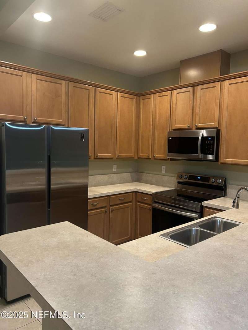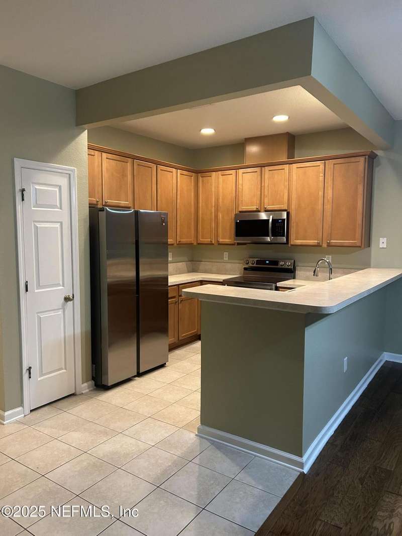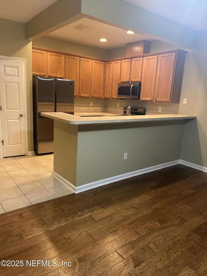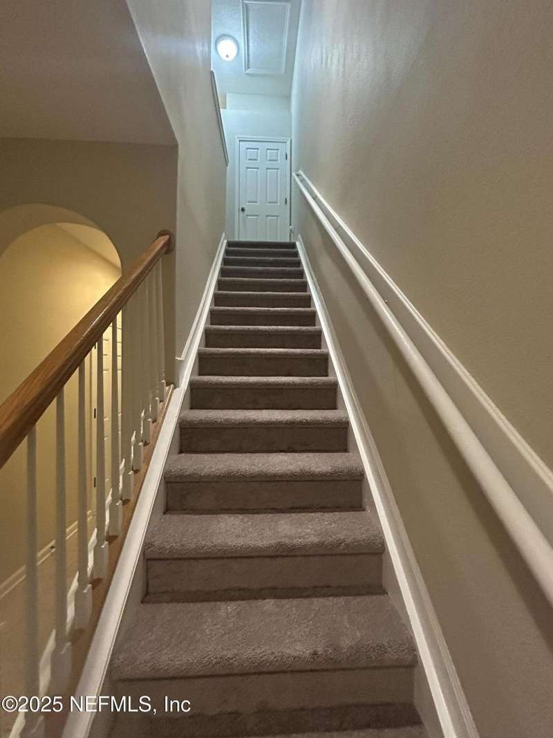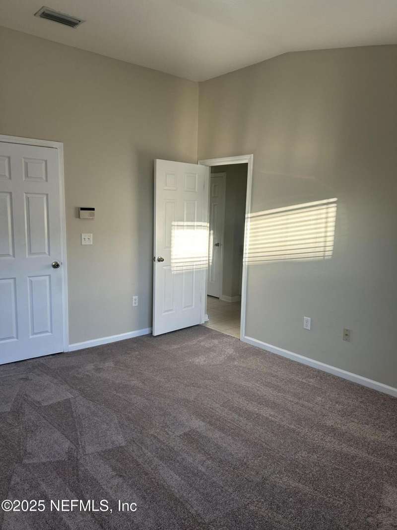 Welcome to this updated freshly painted townhome in the Emerald Preserve community of Jacksonville. The kitchen features stainless steel appliances with plenty of cabinet space, and opens to the family room with easy-care hardwood flooring. Tile floors are in the foyer, kitchen, and baths. Upstairs, there are two large master suites, each with a private bathroom, walk-in closet, and brand-new carpeting. A screened in covered patio provides outdoor space, and the 1-car garage offers extra storage. Residents of Emerald Preserve enjoy a community pool, fitness center, and well-kept grounds.