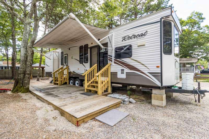 This 2013 Keystone Retreat unit has just undergone some wonderful updates and improvements! Offering approximately 400 sf with laundry, this 1 bedroom (king size bed) is perfect for an affordable Cape Cod getaway! Improvements include all new flooring, new paint, new large deck and stairs, re-sealed roof and flashing. A nicely sized backyard with newer gazebo and firepit is the perfect place to end the day after beach and pool time. Enjoy the park pool, children play area, and new dog run area. This is a SEASONAL park open from May 1-October 31. Current park fee for this site is $7,956. The fee includes lease of land, sewer, water, taxes, daily trash pick-up, amenities & on site management. All transactions in the park are cash and bill of sale (no financing available). All sales are subject to park approval of the buyer via a submitted application upon acceptance of an offer. Buyers to contact park personnel with any park specific questions.
