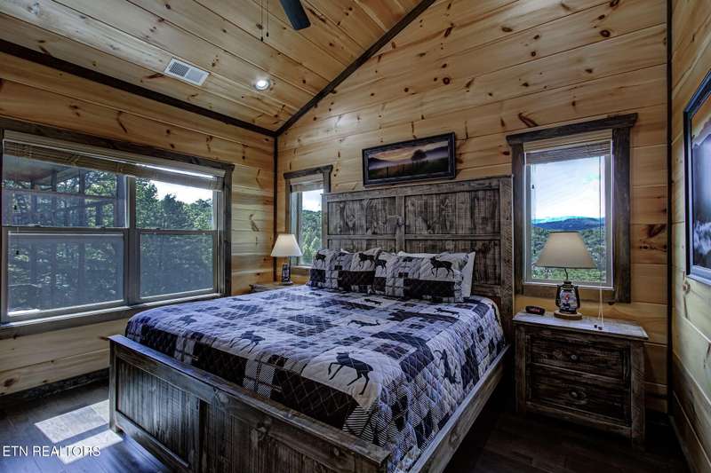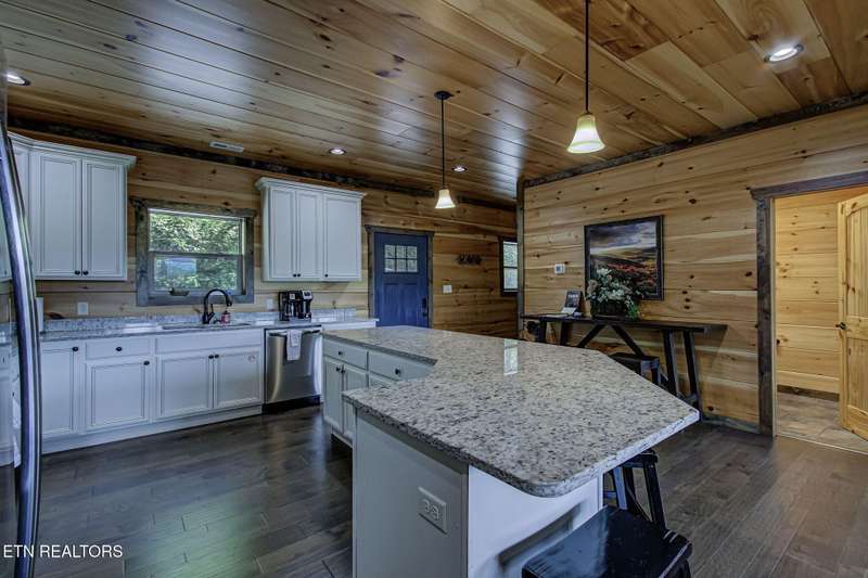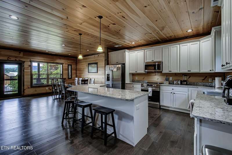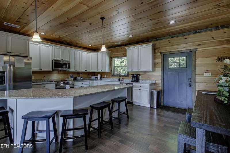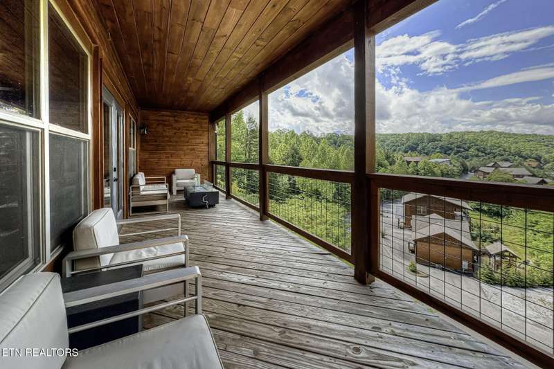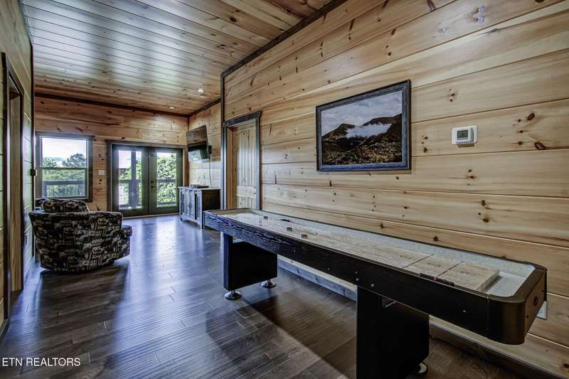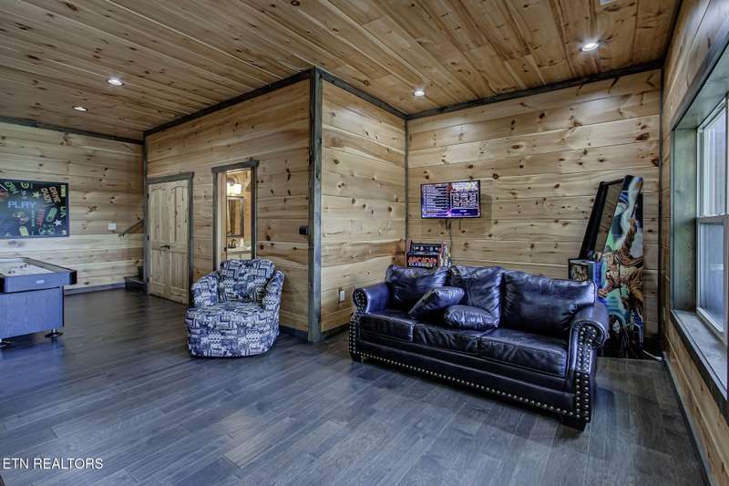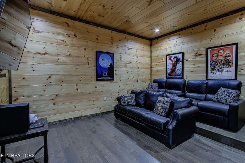 Discover the best of the Smokies with this exceptional 5-bedroom, 5.5-bath, 3-story cabin, perfectly situated in the coveted Shangrila subdivision. Enjoy sweeping, expansive views of the Smoky Mountains, including views of Mt. LeConte, from two spacious covered decks-an unforgettable backdrop for both quiet mornings and evening gatherings. Just 12 minutes to Gatlinburg and 18 minutes to Dollywood, this property offers unbeatable access to top attractions while still delivering the peace and privacy of a mountain retreat. Located on paved roads with HOA-covered exterior maintenance, this is true low-maintenance mountain living. Inside, you'll find a beautifully designed open-concept layout with a stone fireplace, leather furnishings, and a fully equipped chef's kitchen with granite countertops and stainless steel appliances. The cabin includes four king bedrooms, a bunk room, and eight total flatscreen TVs, plus a private theater and game room for endless entertainment. Whether you're looking for a high-performing investment or a private getaway, this home offers the perfect blend of location, views, and ease of ownership. Schedule your showing today and experience Smoky Mountain living at its best.