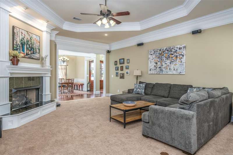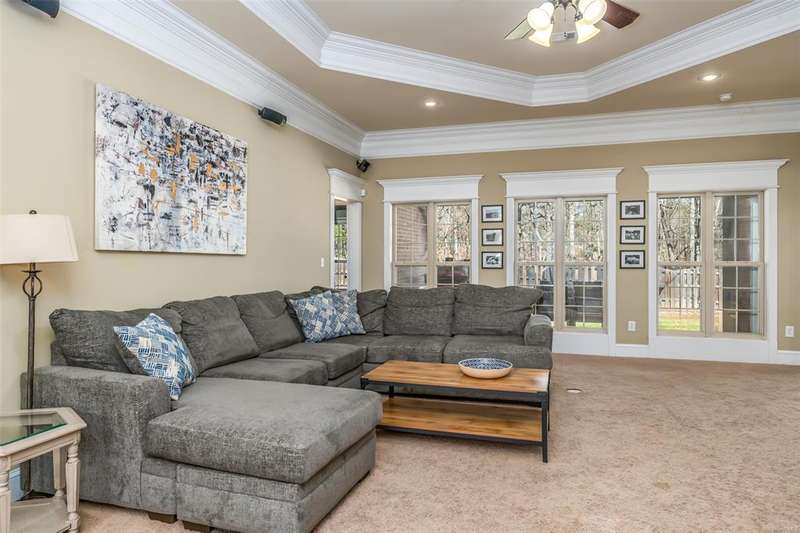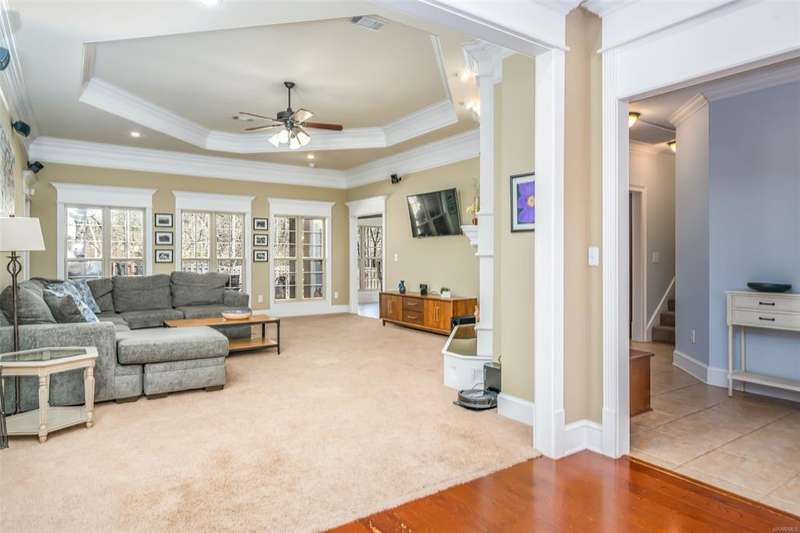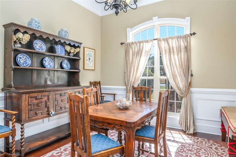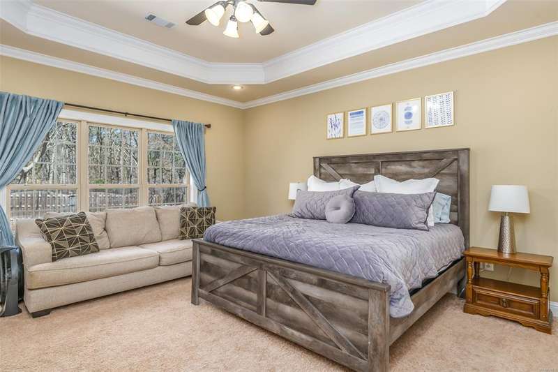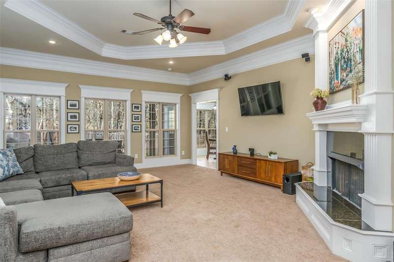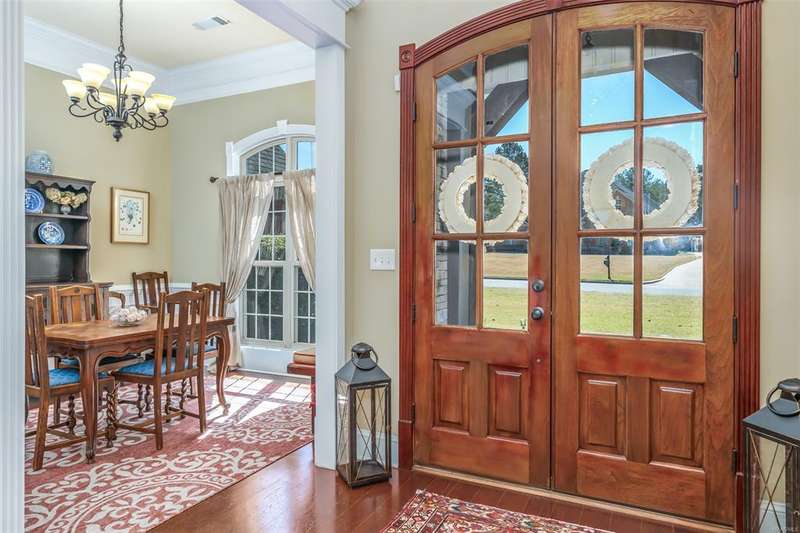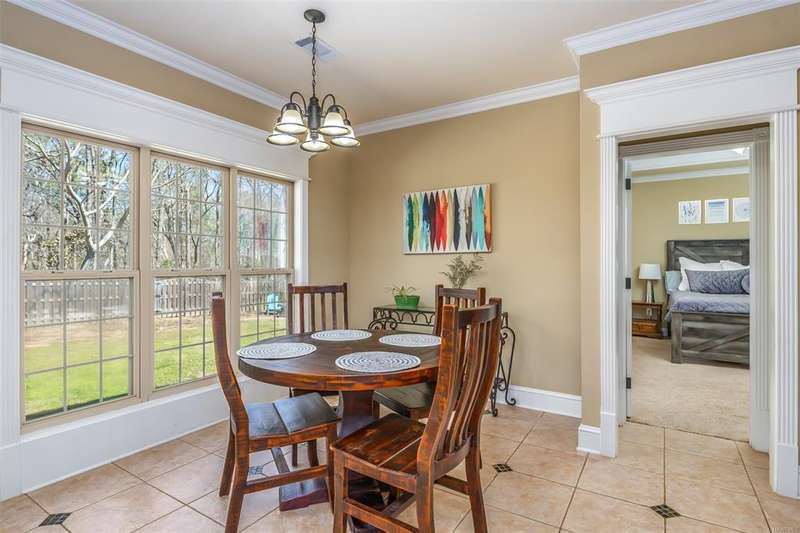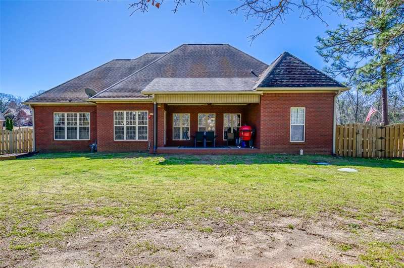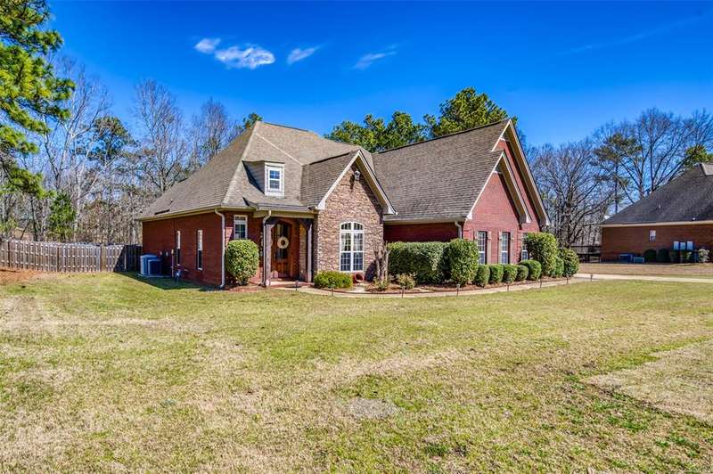 Stunning 4 bedroom, 3.5-bath home in the highly sought after Brookwood Subdivision! The moment you step inside, you will be captivated by the grand arched double entry wood doors, intricate crown molding, tray ceilings, and expansive picture windows that fill the home with natural light. Hardwood floors in the foyer, dining room, gallery and hallway. The beautiful living spaces include an elegant dining room, a spacious great room with gas fireplace and a fully equipped kitchen featuring granite countertops, stainless appliances, an abundance of cabinetry, a breakfast area, and breakfast bar for additional seating. The well-designed split floor plan ensures privacy with the primary suite separate from the 2 generously sized guest bedrooms, with a Jack & Jill bath all located on the MAIN level! Upstairs, an oversized 4th bedroom or bonus room features an ensuite full bath, dedicated heating and cooling system, and easy walk-in attic access. The spa-like bath in the primary suite is complete with double vanities, jetted garden tub, a shower boasting NEW floor to ceiling tile and a fabulous walk-in closet. The laundry room boasts 2 walls of cabinets and a utility sink. Step outside to the patio and enjoy views of the spacious, private backyard that is fully fenced. Just beyond the fence, is a tranquil forest and brook, adding to the home’s serene atmosphere. Beautiful neighborhood amenities include a clubhouse with fitness center, swimming pool, outdoor covered pavilion with fireplace and a pond with a surrounding walking trail! Make your appointment today to tour this wonderful home!