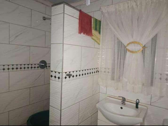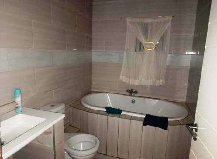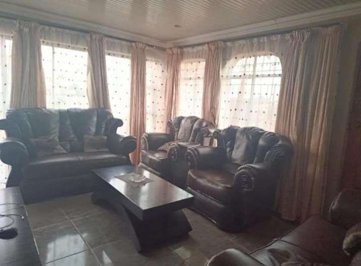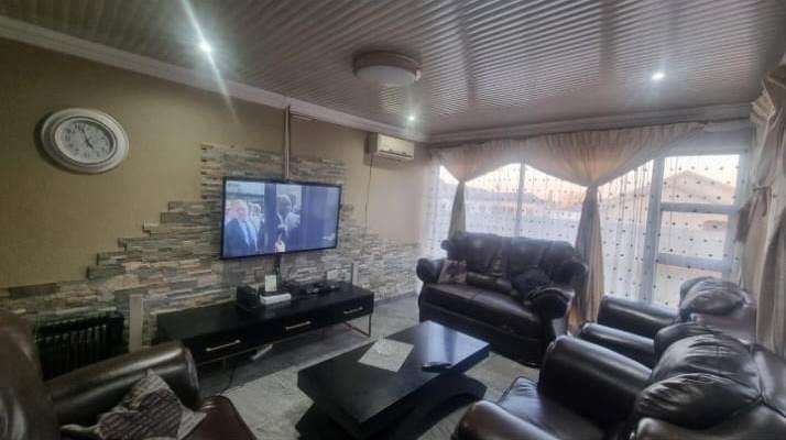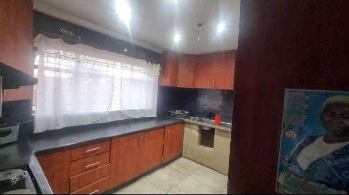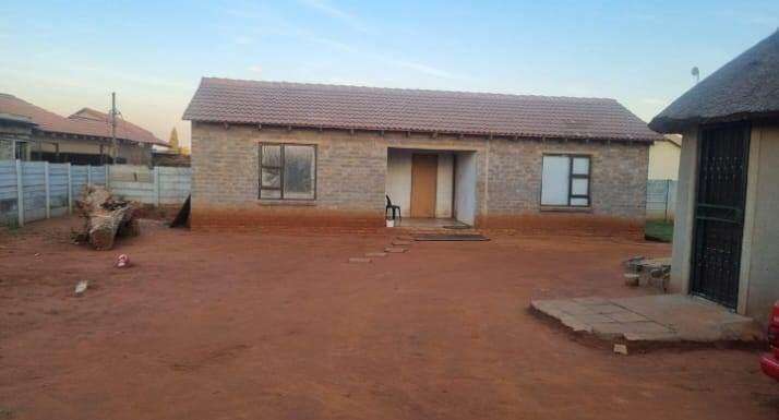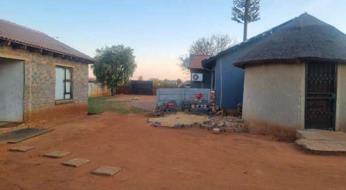 This beautiful property is a well-maintained 3-bedroom house. It features three bedrooms, two bathrooms, a kitchen, and a lounge. Additionally, there is an outside thatch-roof rondavel and a spacious yard. The property is conveniently located close to various amenities, including schools, churches, and a shopping centre.