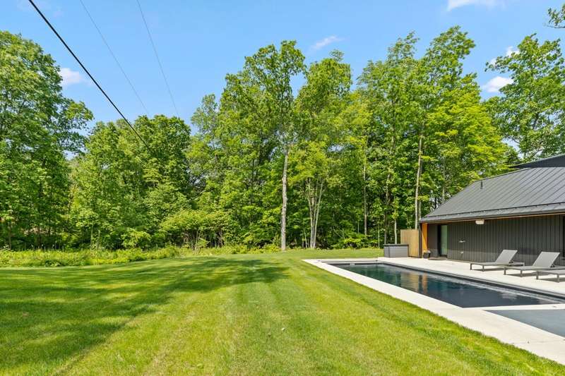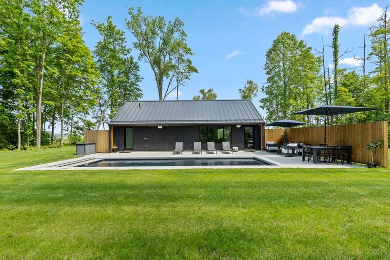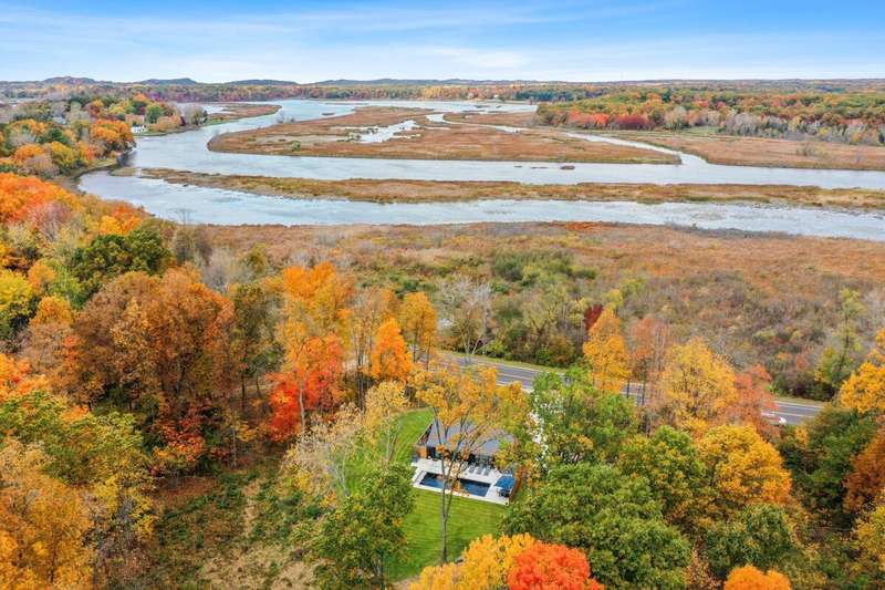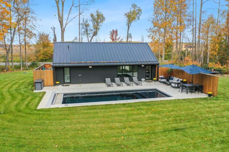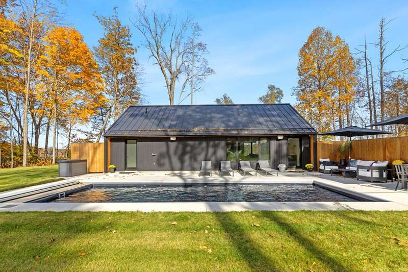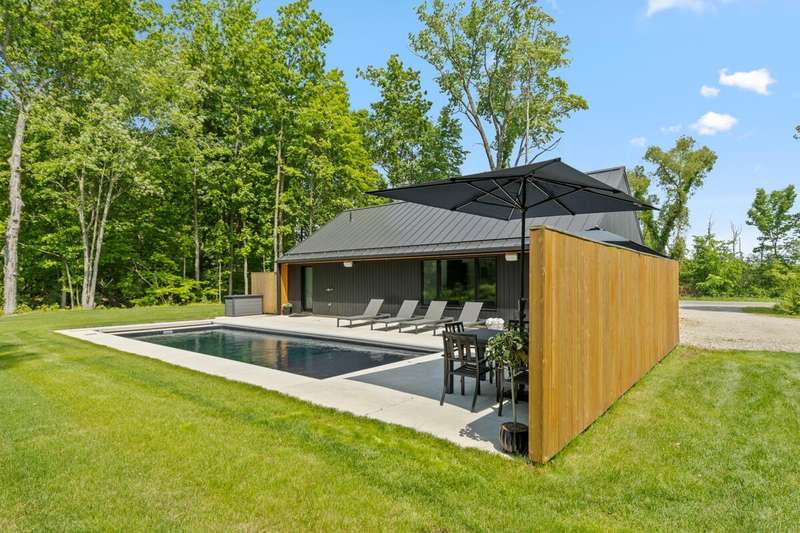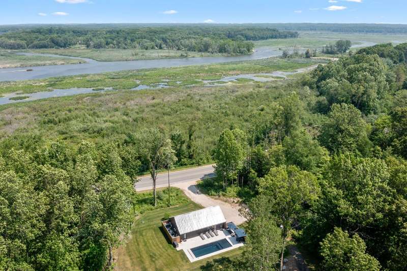 Experience the perfect blend of contemporary elegance & comfortable living in this stunning single-family residence. This custom-built home offers a luxurious lifestyle with 2 bedrooms, 2 bath, nicely designed open living space with a modern kitchen offering high end appliances. The kitchen is a chef's paradise equipped with expansive quartz countertops and center island...making it ideal for both everyday meals and entertaining guests. The outdoor space includes a large patio, amazing volcanic black heated in-ground pool with Integra auto cover system, plenty of sunshine, and Sonos speakers with amp will add to your fun. If that doesn't wow you, then walk the beautiful 5.73 acre property with trails and 165 ft of river frontage that can have a dock or be cleared for your enjoyment... The setting is gorgeous and just minutes from Saugatuck/Douglas, Shultz Park, boat launch and so much more. This home could be used as a rental and other homes in the area rent very well and for top dollar. Just check with the city and get it certified. Excellent opportunities with this home.